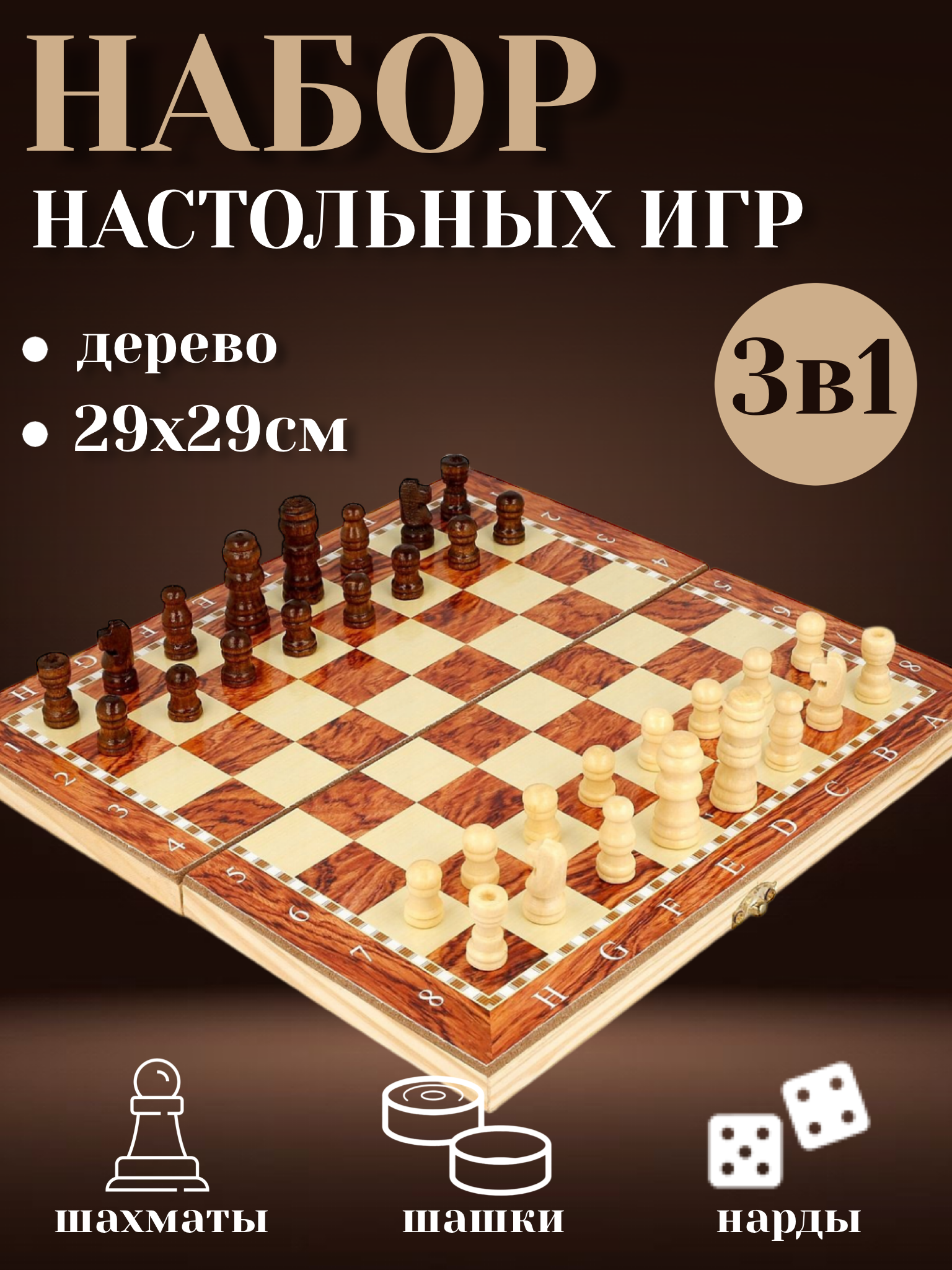 Шахматы деревянные шашки нарды 3 в 1 интересное: