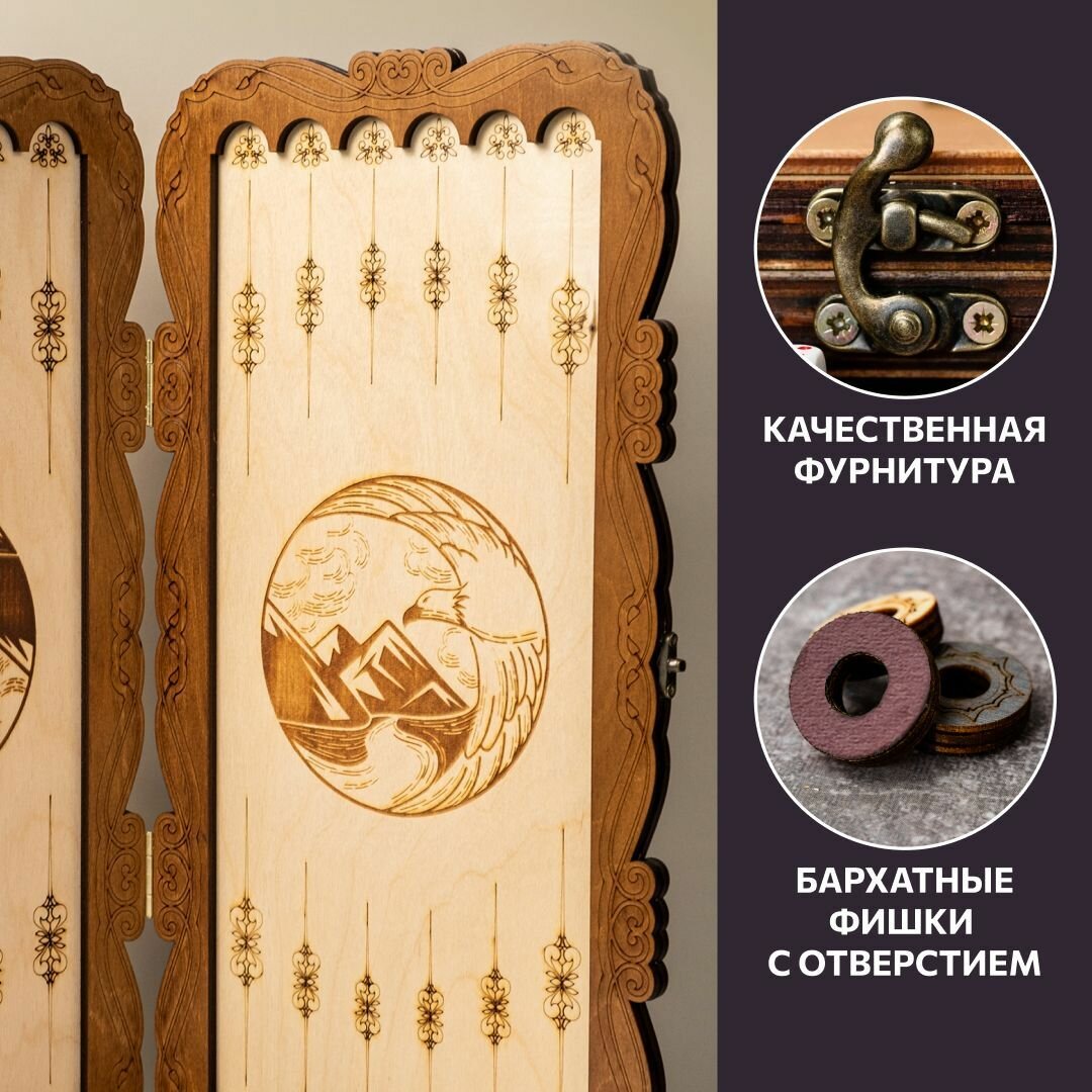 Нарды деревянные большие Орел 58 см лакированные с фишками интересное: