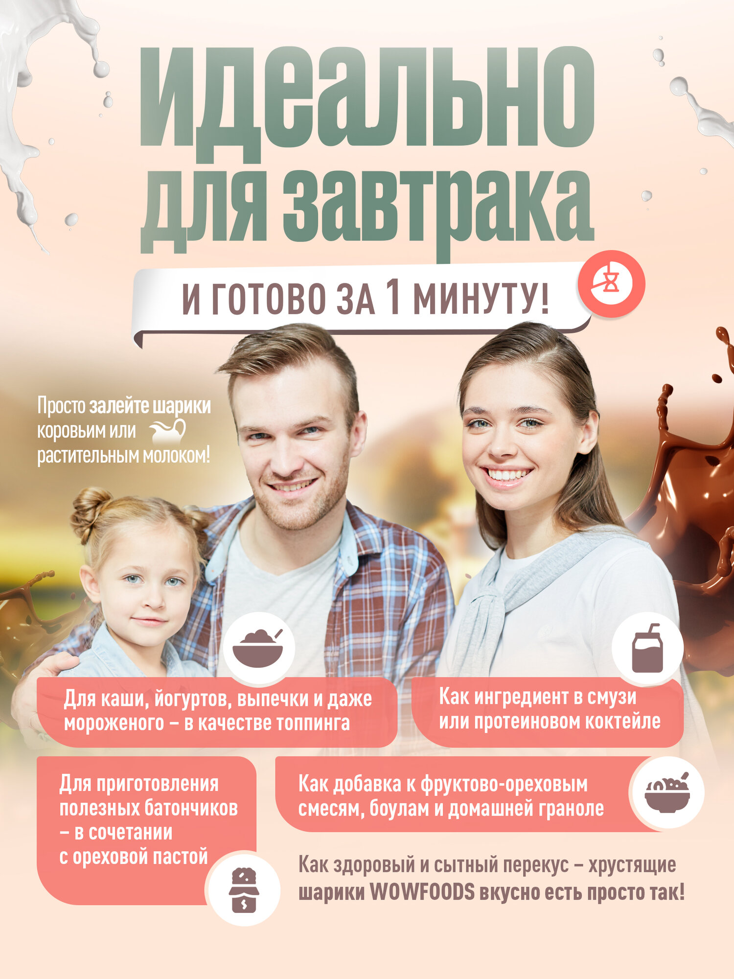 Хрустящие шарики шоколадные с растительным протеином без сахара, без глютена, веган, 200 г интересное: