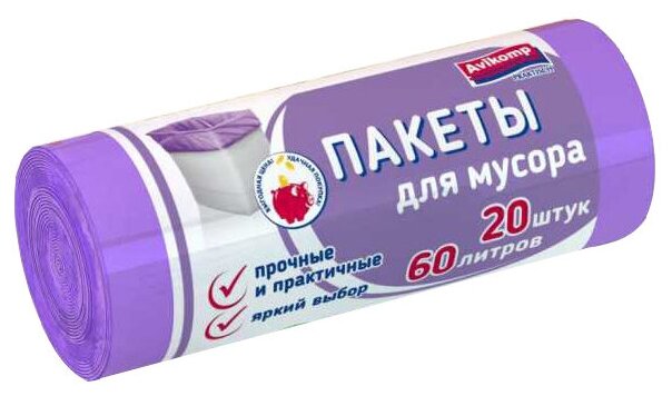 Мешки для мусора Avikomp практичный выбор 60 л (20 шт.) сиреневый