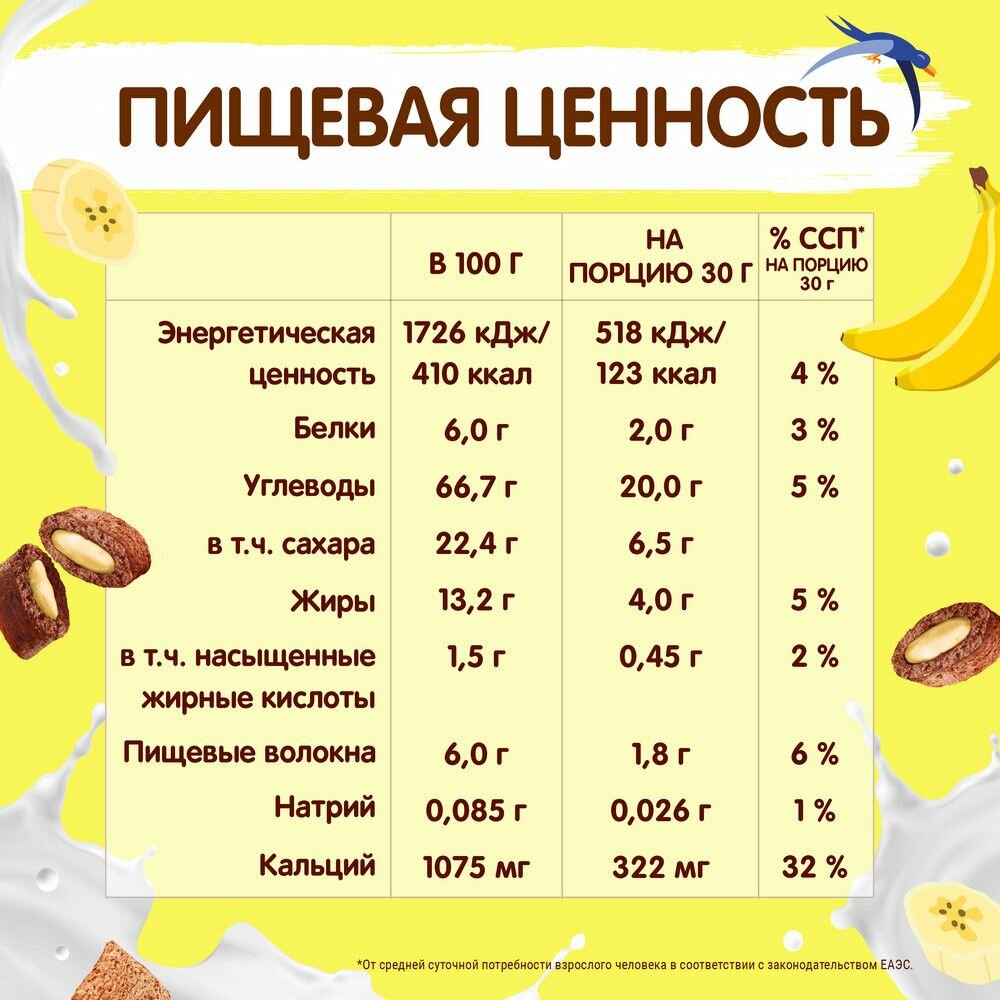 СохранитьГотовый завтрак "Хрутка", Злаковые подушечки с начинкой со вкусом банана, обогащенные кальцием, 220г 2 шт интересное: