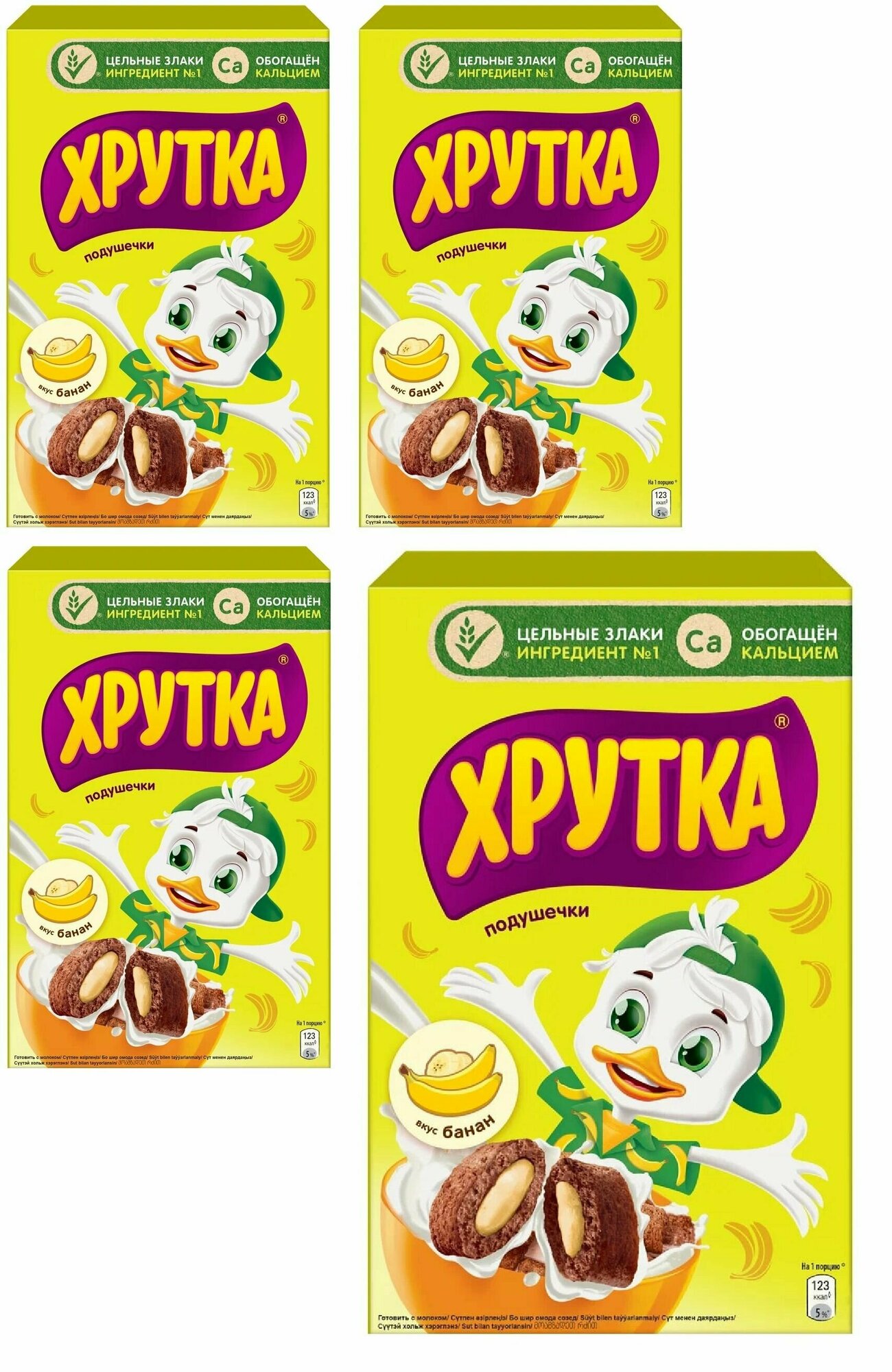 Купить Готовый завтрак "Хрутка", Злаковые подушечки с начинкой со вкусом банана, обогащенные кальцием, 220г 4 шт