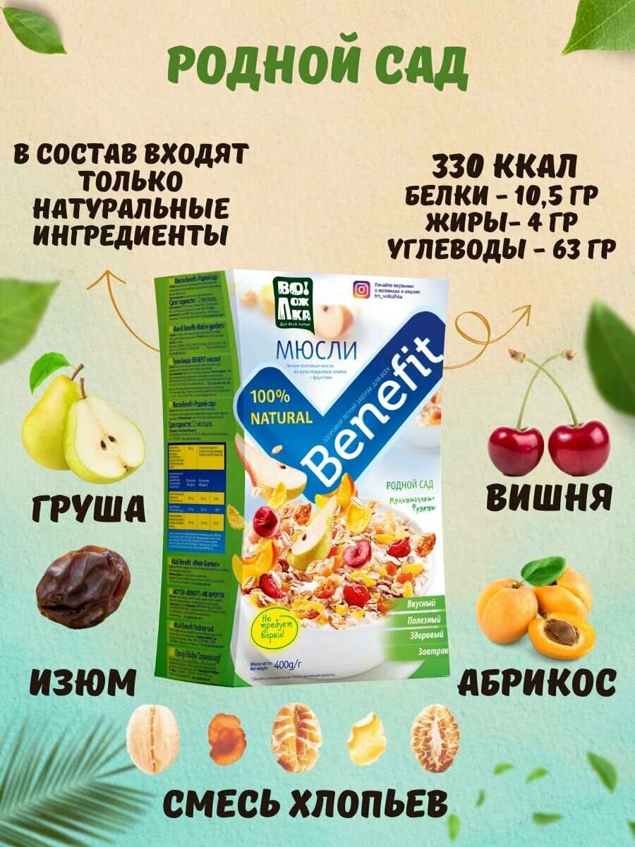 Мюсли Benefit Родной сад с грушей 3 шт по 400г. интересное: