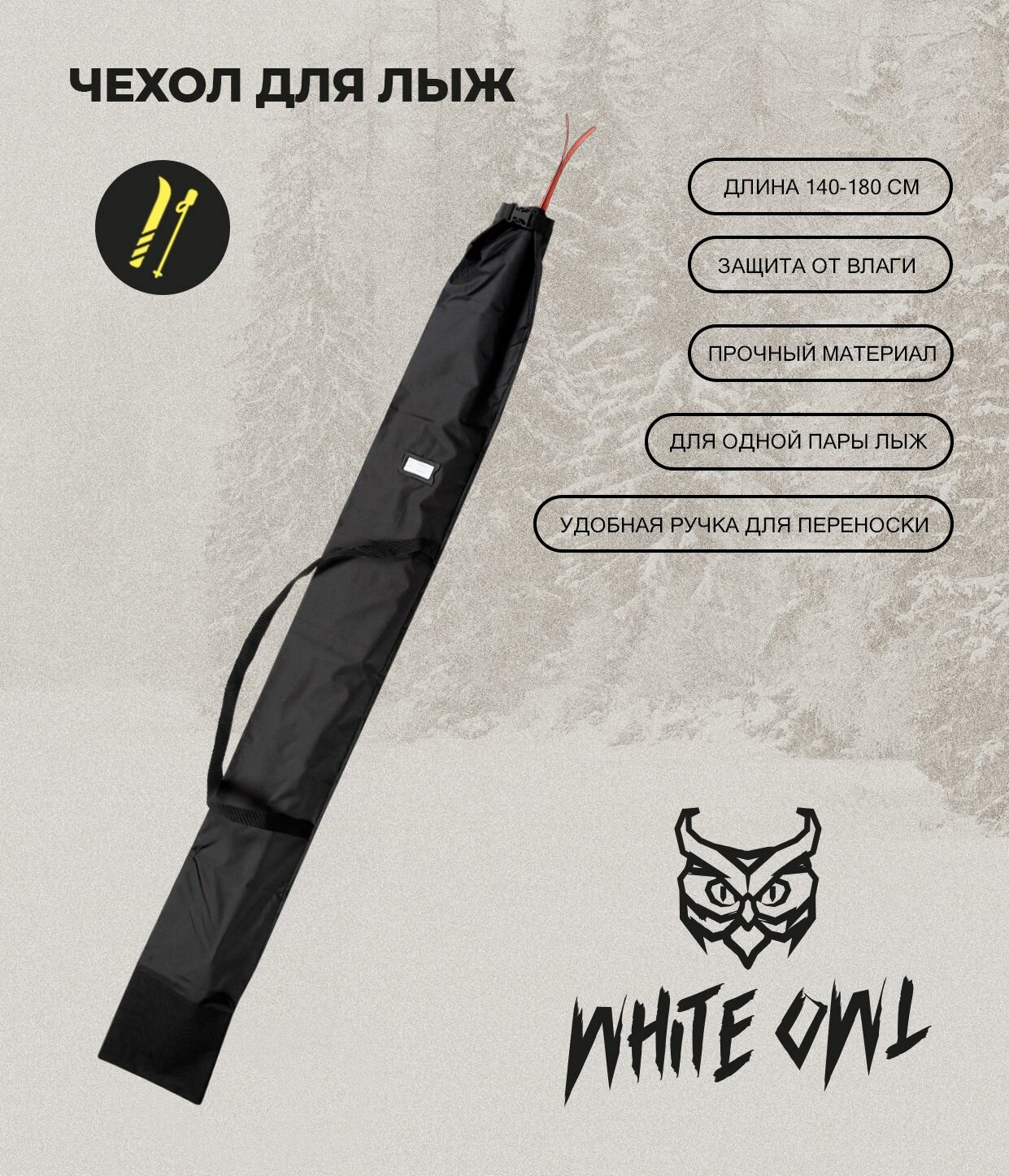 Чехол для беговых лыж White Owl, модель SBC_999-201, 140-180 см, черный интересное:
