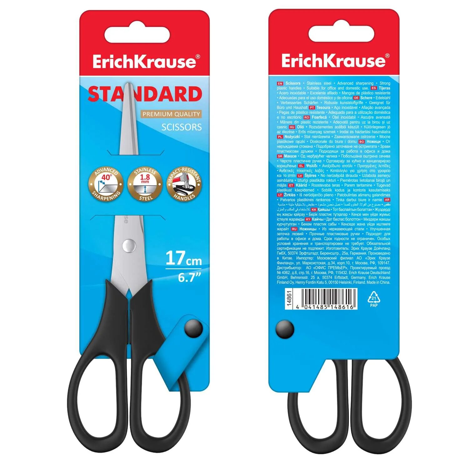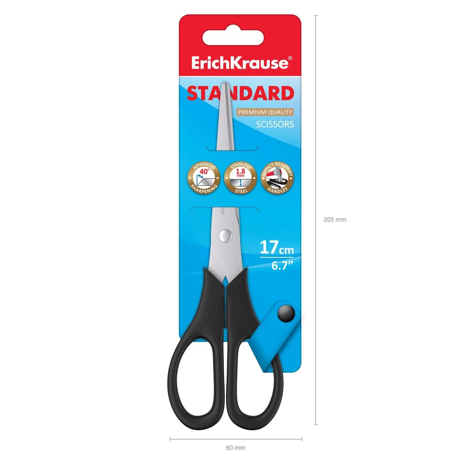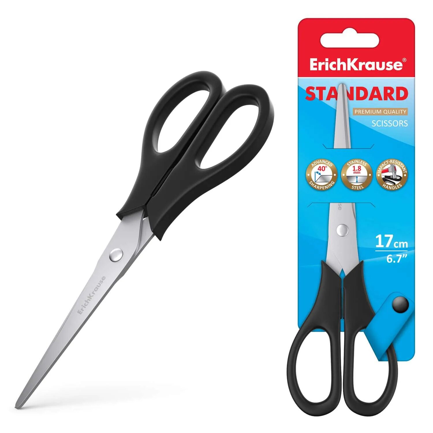 Ножницы ErichKrause Standard, 17см (в блистере по 1 шт.)
