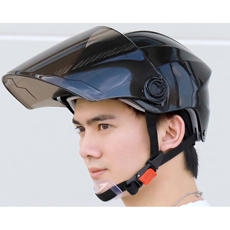 Шлем полузакрытый с затемненным забралом, мотошлем открытый для мопеда, электросамоката (черный) интересное: