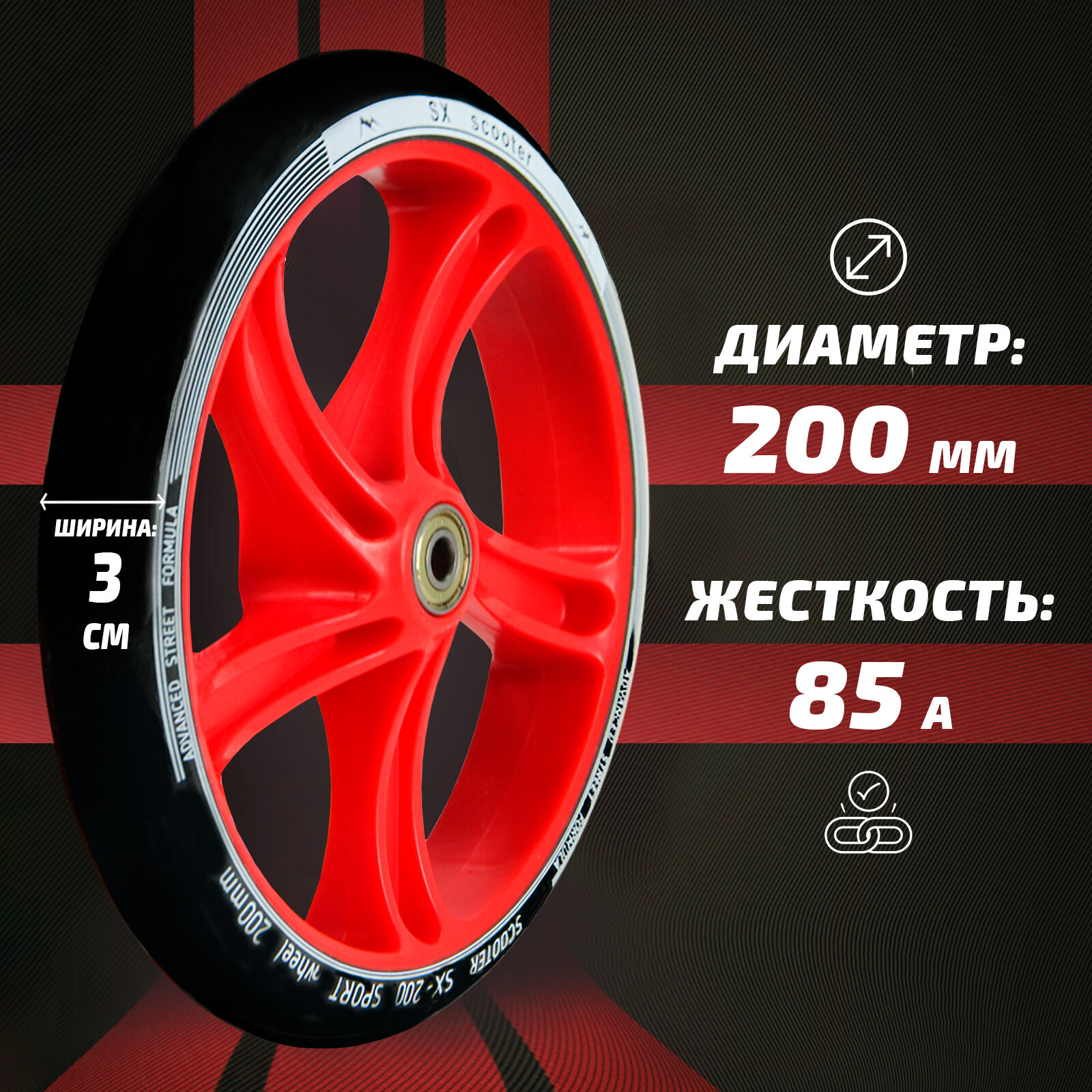 Колесо для самоката 200мм 2шт, полиуретан, красное интересное: