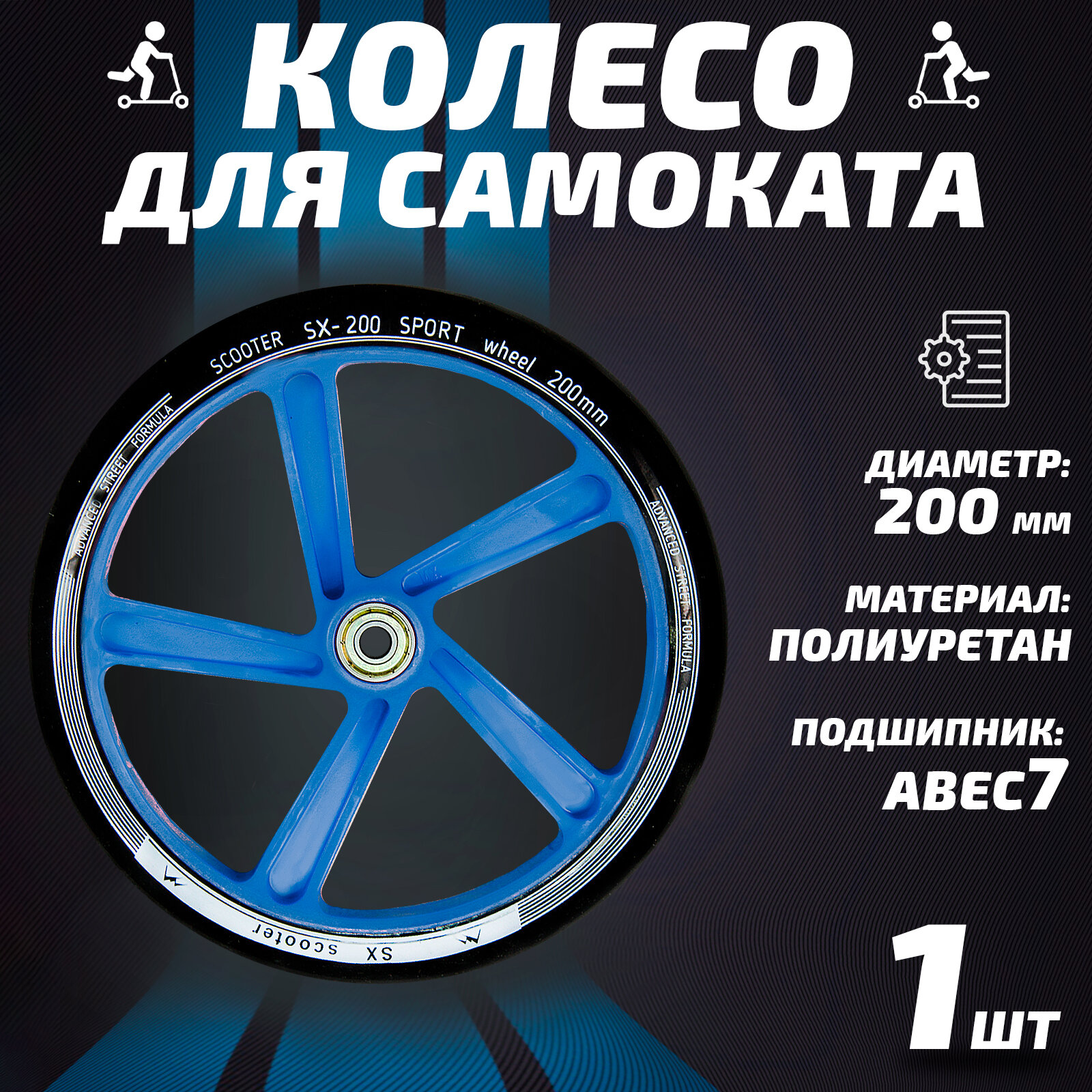 Колесо для самоката 200мм, полиуретан, синее интересное: