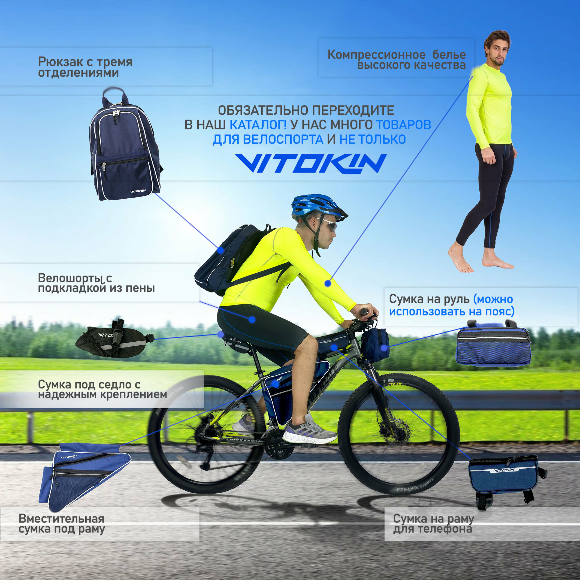 Cумка для самоката и велосипеда на руль VITOKIN, синяя интересное: