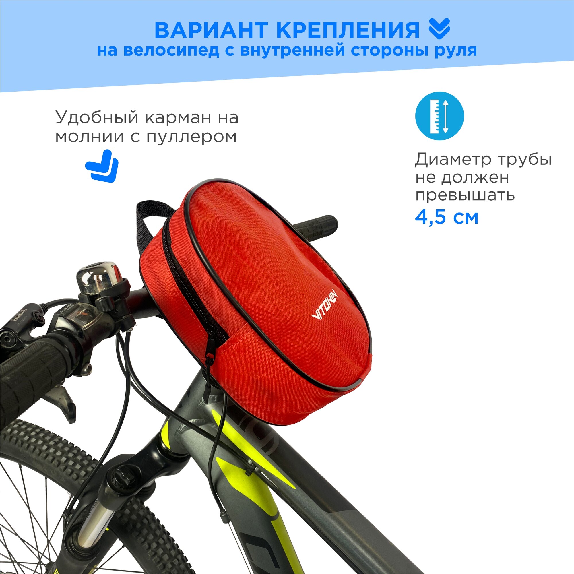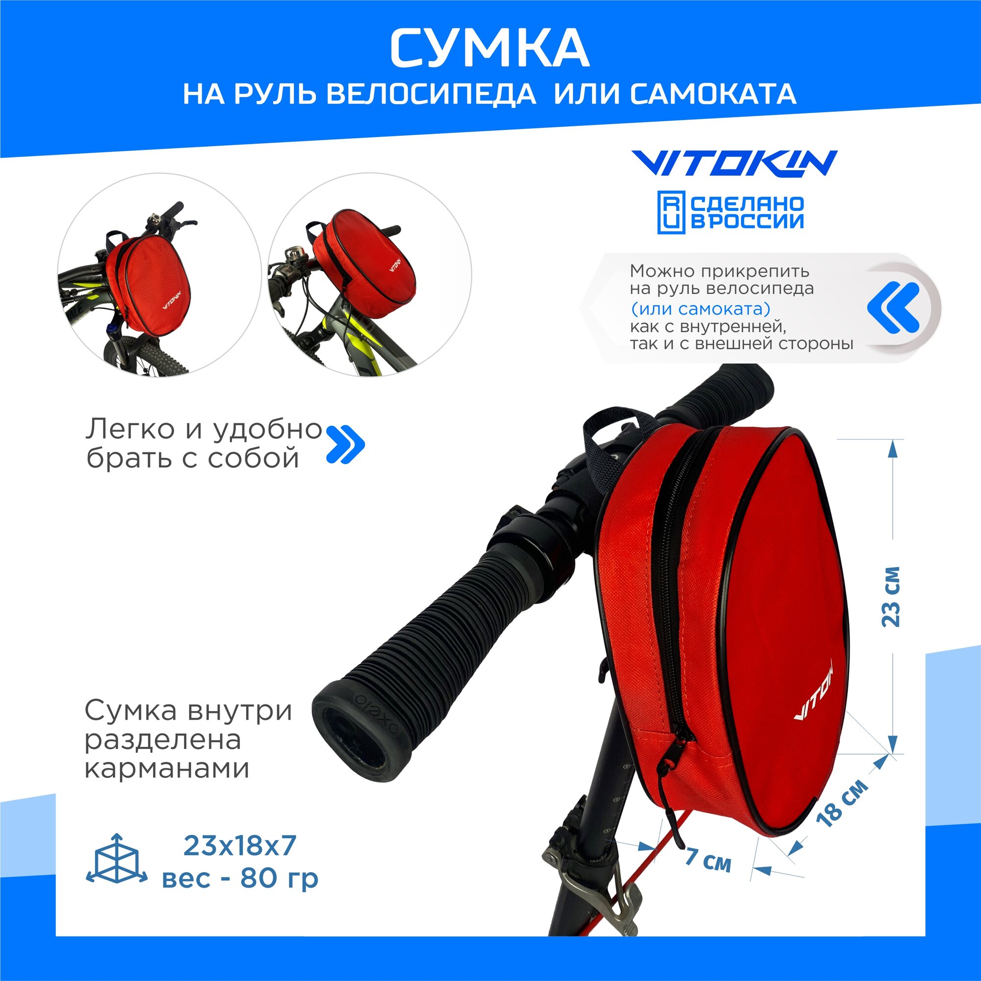 Cумка для самоката и велосипеда на руль VITOKIN, красная интересное:
