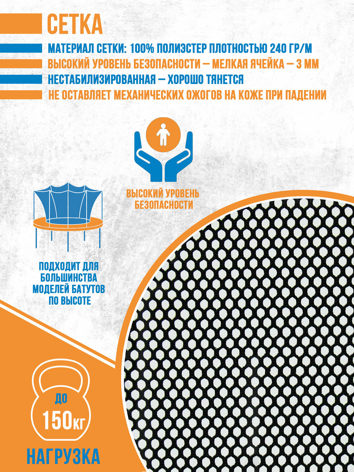 | Подробная комплектация | защитная сетка без стоек |