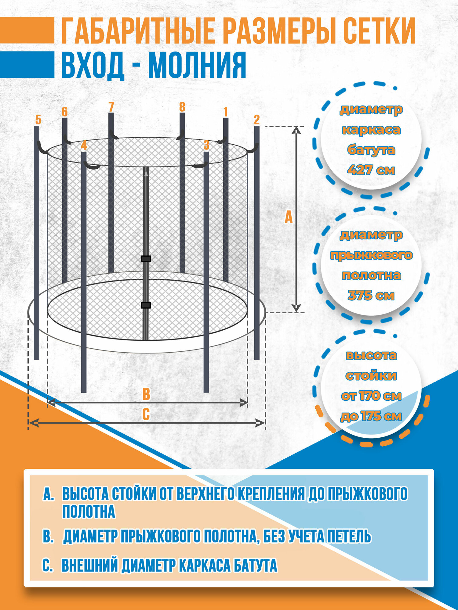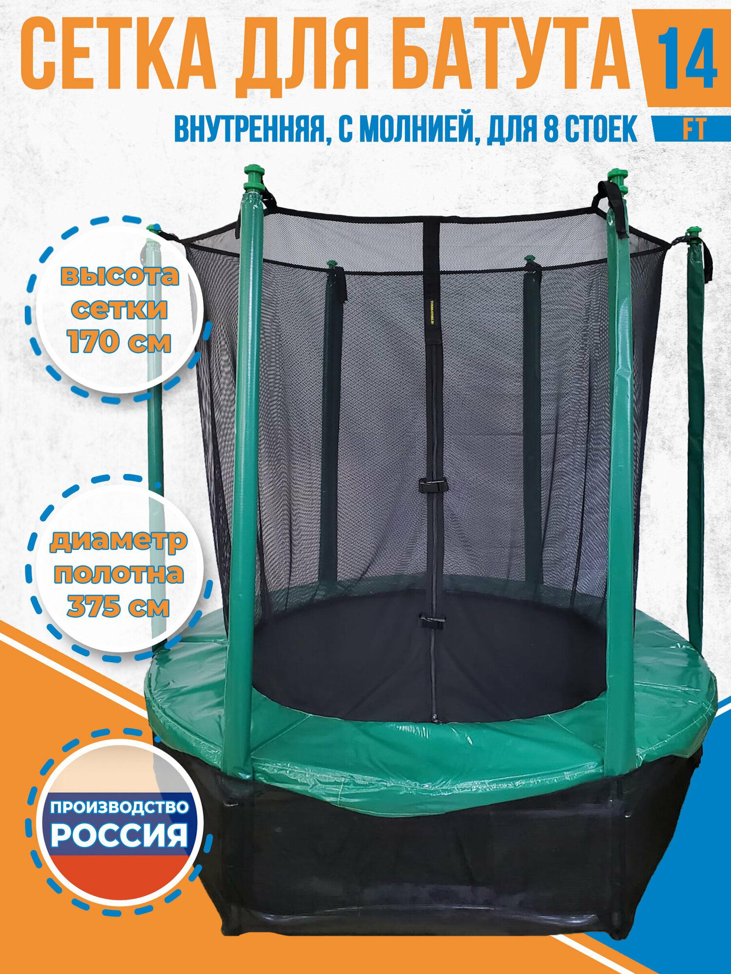 Купить Сетка внутренняя для батута 14 футов - на диаметр прыжкового полотна 375 см, 8 стоек, молния