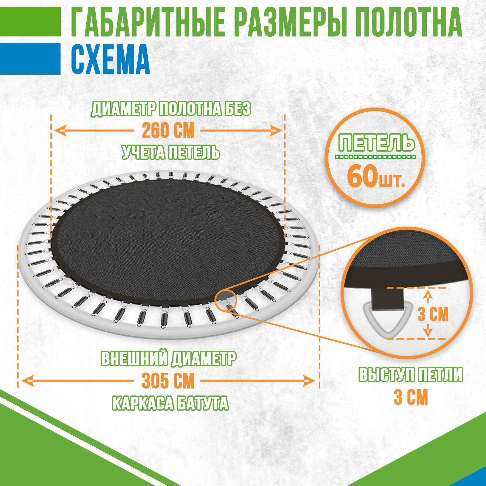 СохранитьПрыжковое полотно круглое диаметр 260 см, 60 петель для батута 10 футов (305 см по каркасу) интересное: