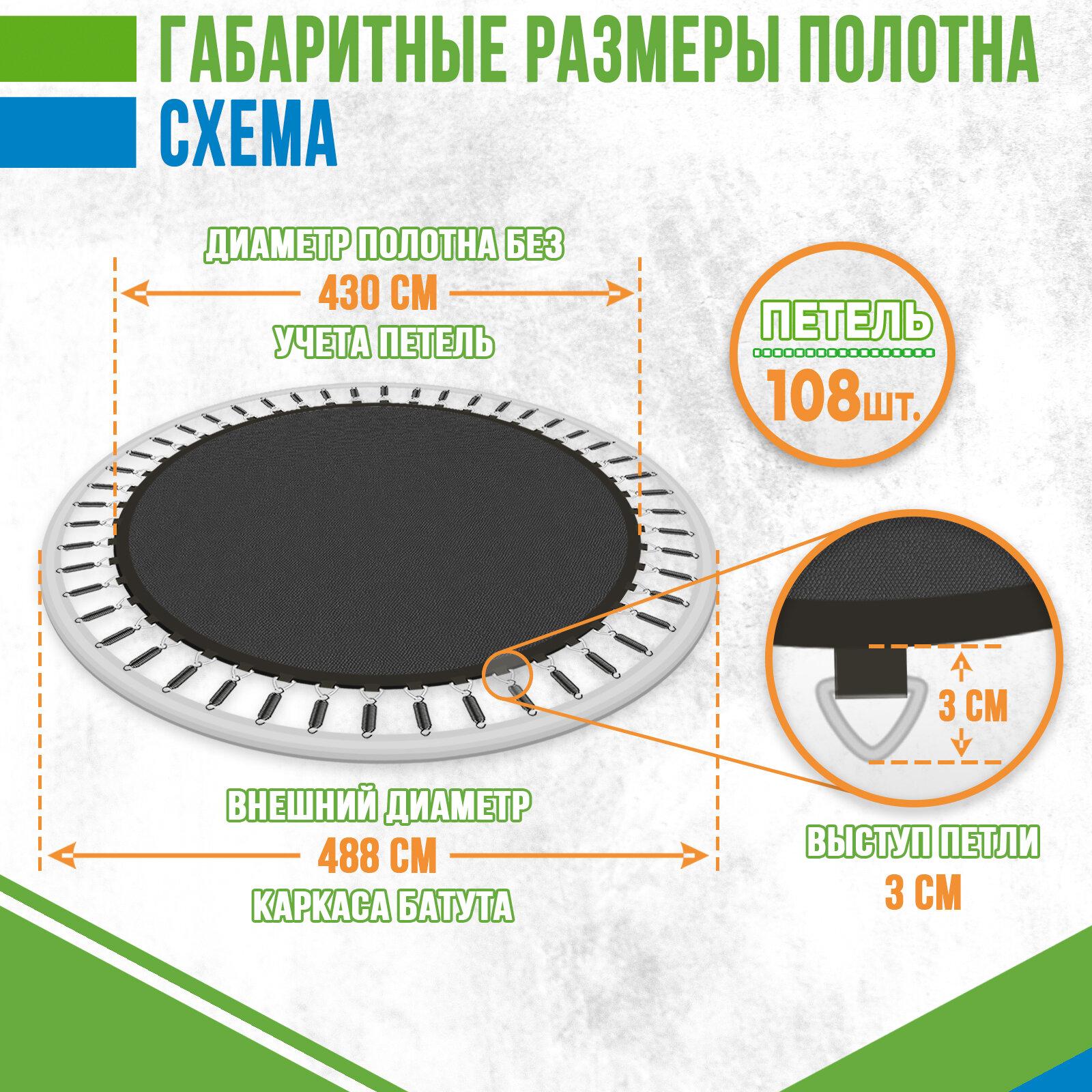 СохранитьПрыжковое полотно круглое диаметр 430 см, 108 петель для батута 16 футов (488 см по каркасу) интересное: