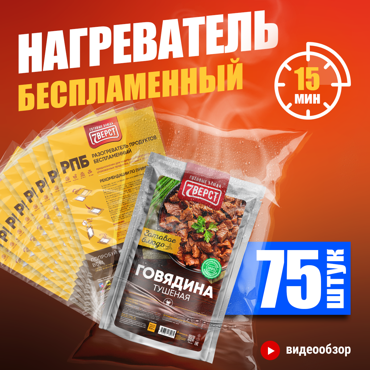7 Вёрст Беспламенный нагреватель пищи БНП. Для разогрева реторт-пакетов и консервов. Набор - 75 шт.