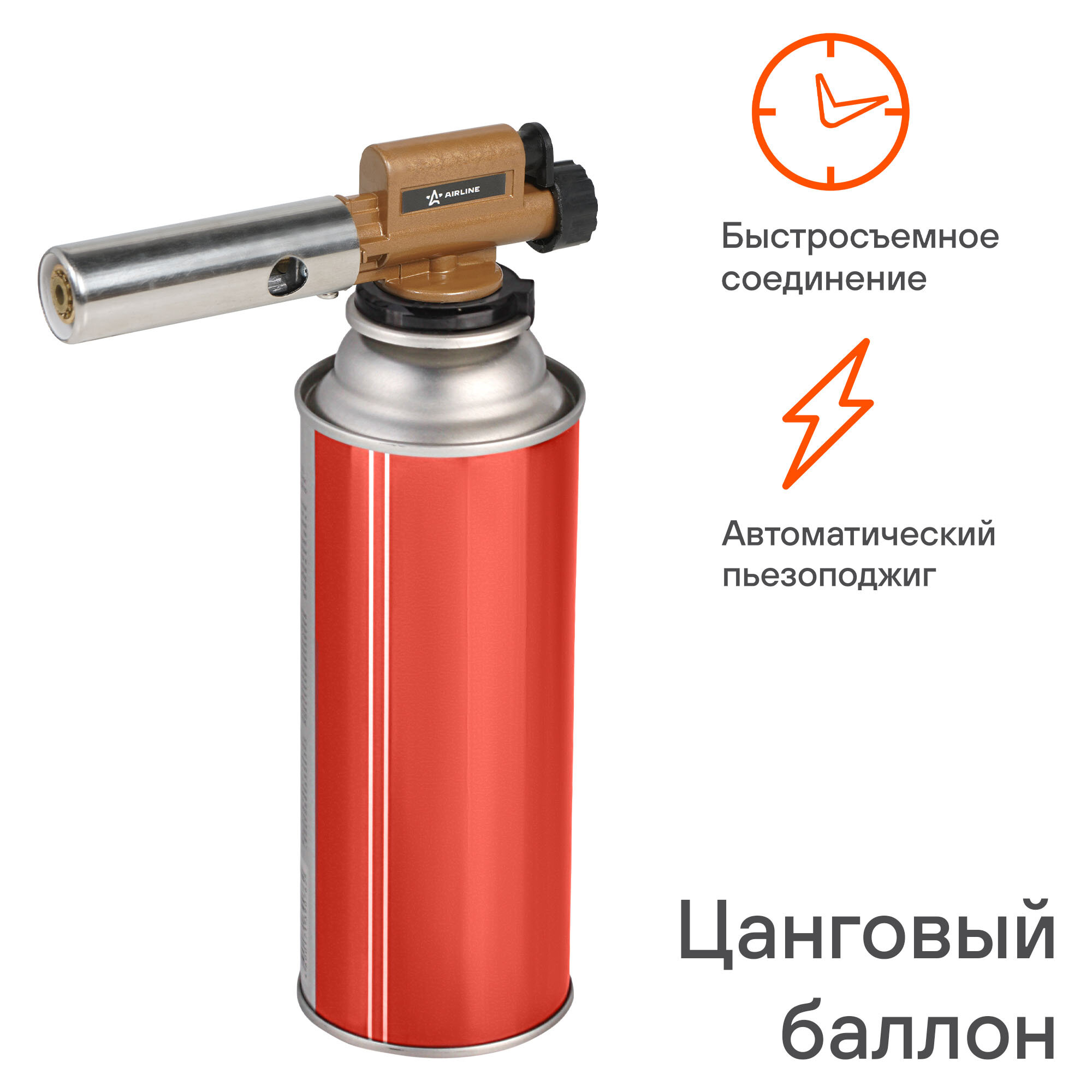 Горелка газовая на цанговый баллон, пьезоподжиг, сопло D20*70 мм, с керамикой, металл ADGT012 AIRLINE интересное: