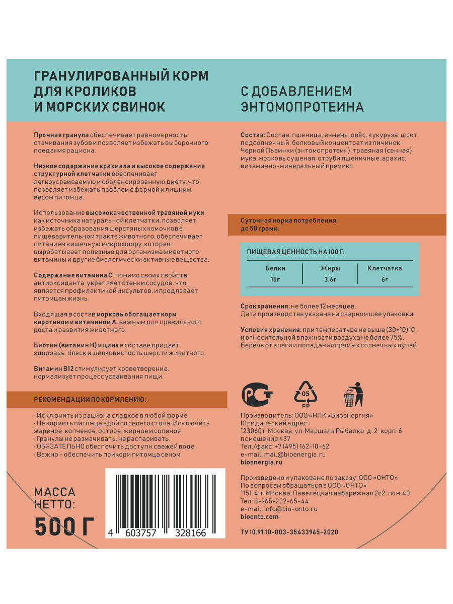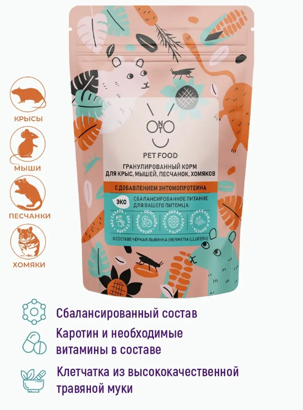 ONTO Гранулированный корм для крыс, мышей, песчанок, хомяков с добавлением энтомопротеина, 500г, 328142 интересное: