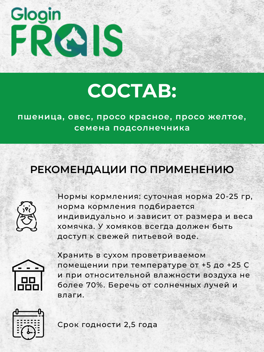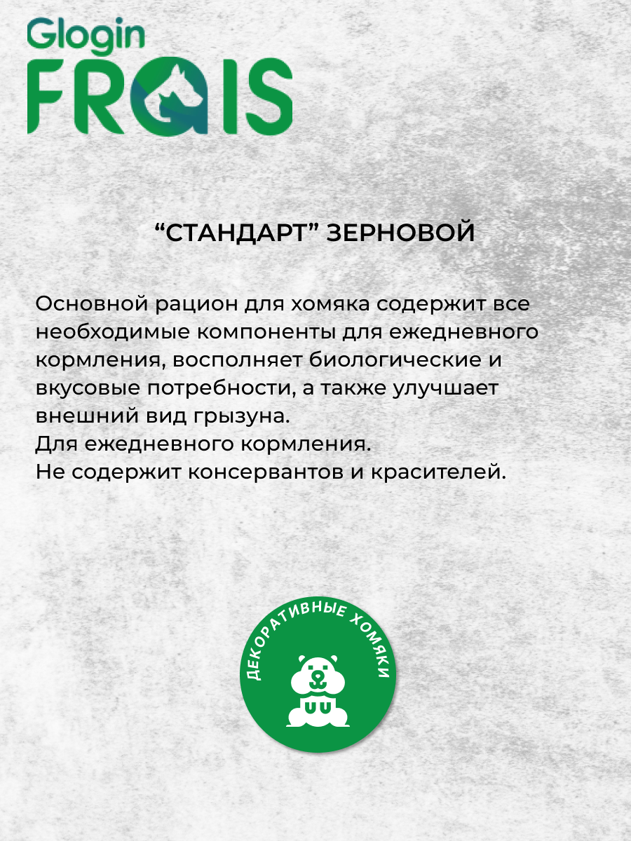 Корм зерновой для декоративных хомяков Glogin Frais Стандарт, 500гр интересное: