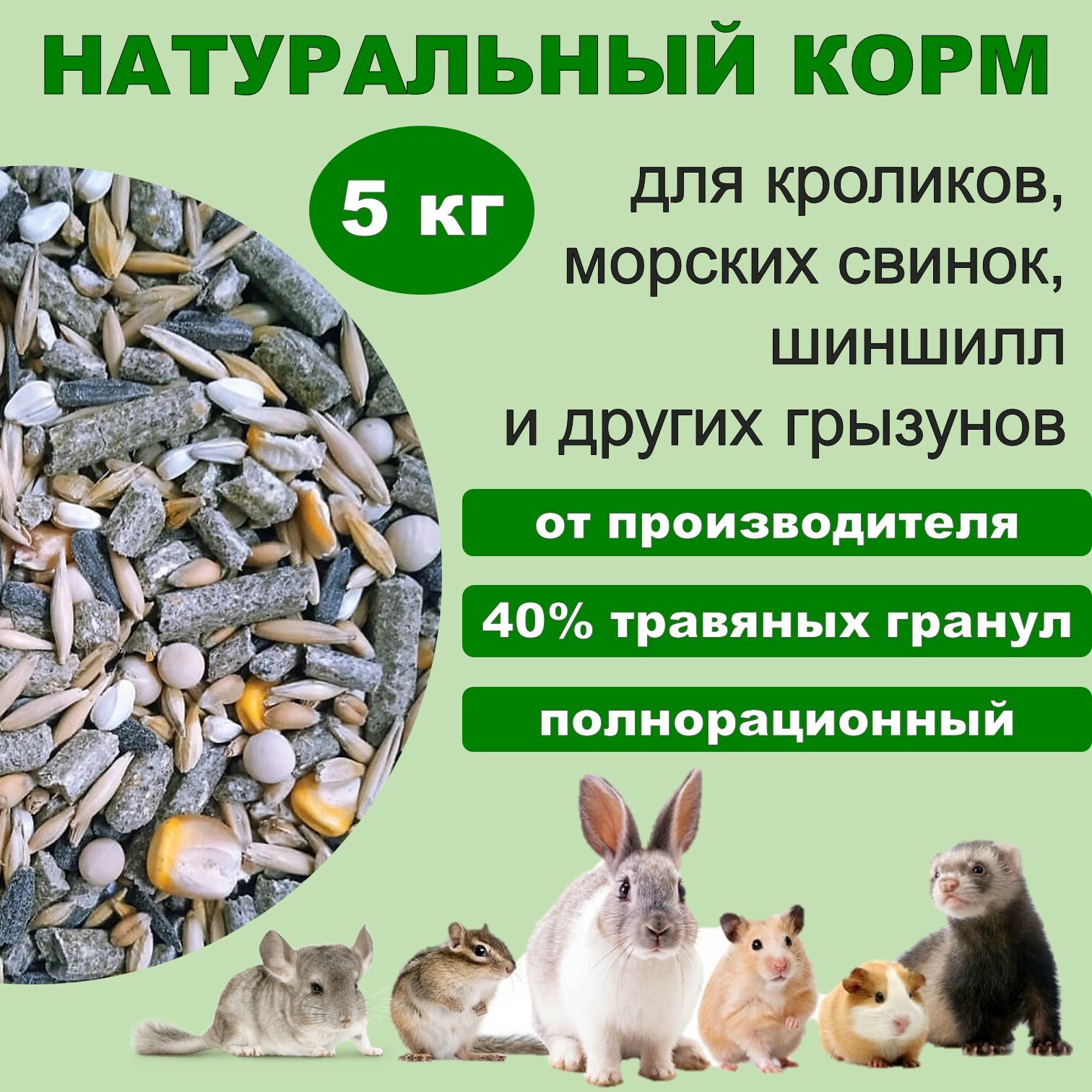 Корм для кроликов, шиншилл, морских свинок, дегу "Премиум" с травяной гранулой, 5000 гр. интересное: