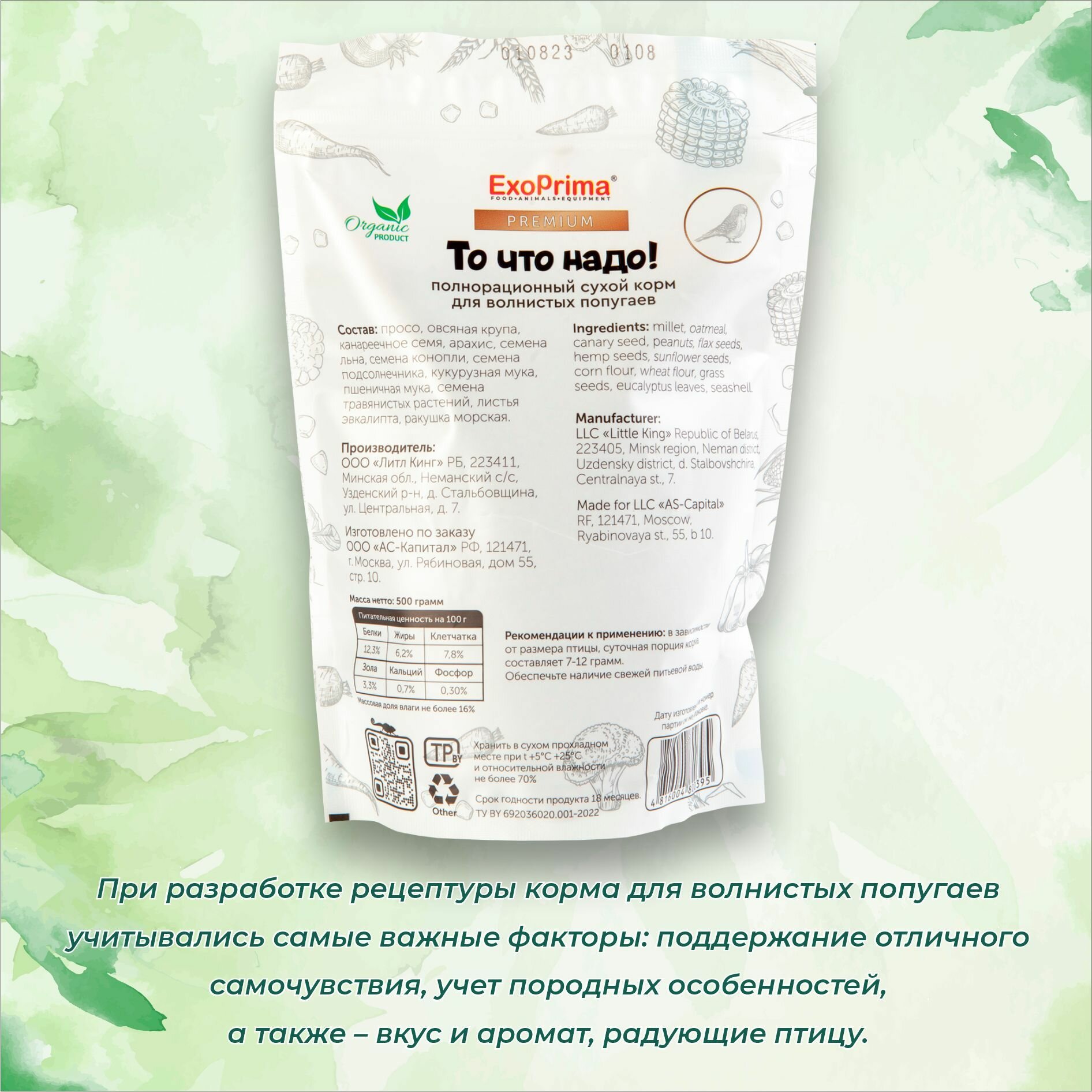 Корм для волнистых попугаев EXOPRIMA "То что надо!" 500г интересное: