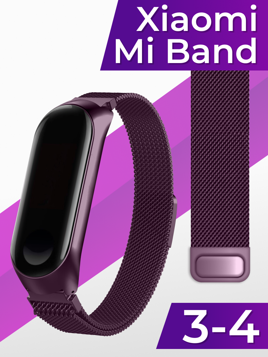Купить Ремешок миланская петля для умных часов Xiaomi Mi Band 3 и 4 / Металлический сменный браслет на часы Сяоми Ми Бэнд 3 и 4 / Фиолетовый