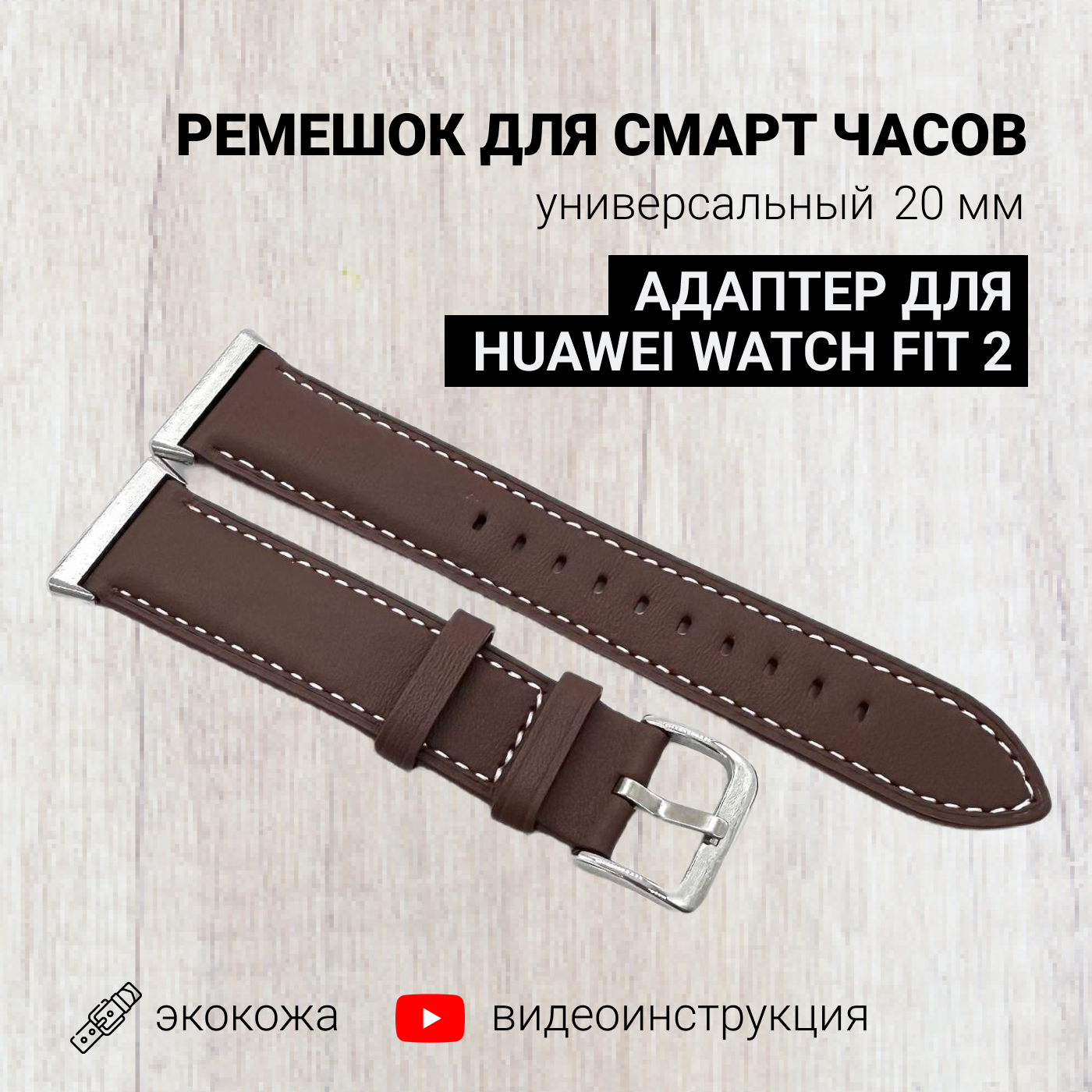 Купить Ремешок для смарт часов 20мм экокожа с адаптером для Huawei Watch Fit 2, экокожа, коричневый, кожаный браслет для умных часов