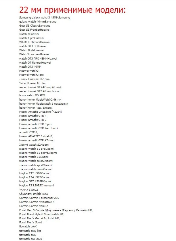 | Совместимые модели умных часов | Huawei Watch GT 2, Huawei Watch GT 2 Pro, Huawei Watch GT2 46 мм, Huawei Watch GT3 46 мм, Samsung Gear S3, Samsung Gear S3 Classic, Samsung Gear S3 Frontier, Samsung Gear S3 Frontier Spartak Edition |