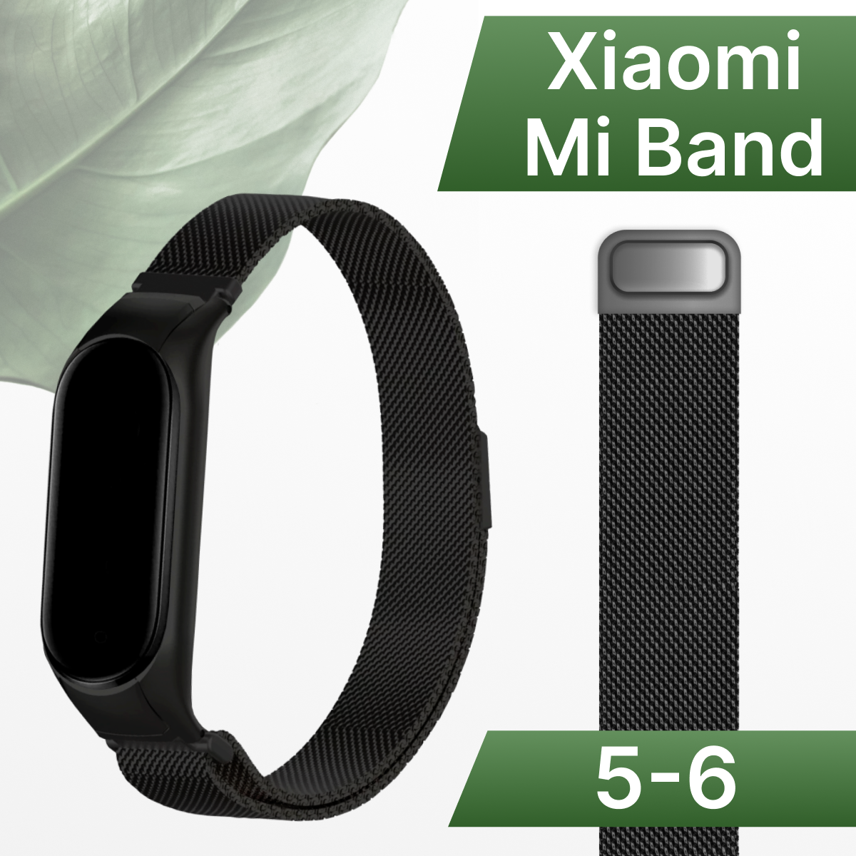 Купить Сменный браслет миланская петля на часы Xiaomi Mi Band 5 и 6 / Металлический ремешок для смарт часов Сяоми Ми Бэнд 5 и 6 / Черный
