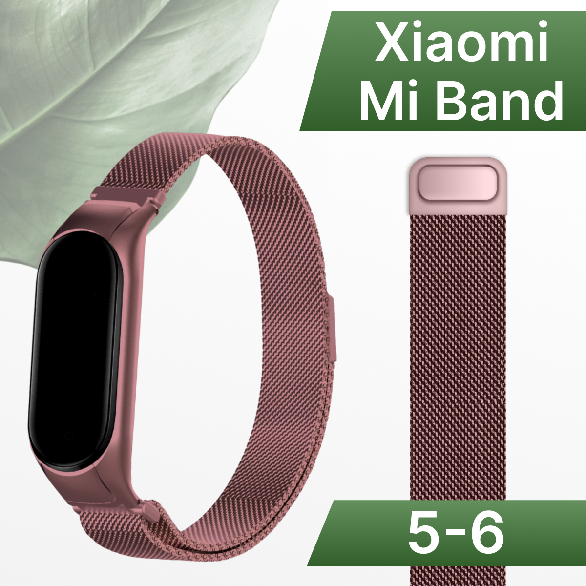 Купить Сменный браслет миланская петля на часы Xiaomi Mi Band 5 и 6 / Металлический ремешок для смарт часов Сяоми Ми Бэнд 5 и 6 / Сиреневый