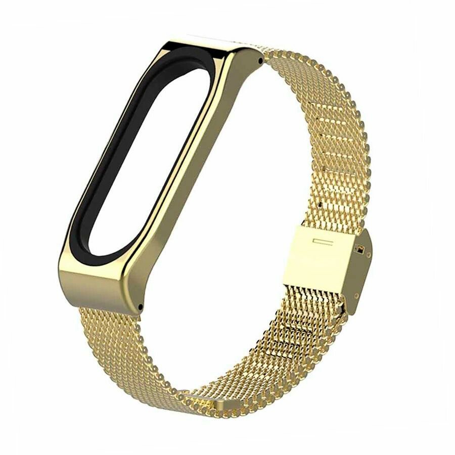 Купить Ремешок металлическая сетка MILAN для фитнес трекера Xiaomi Mi Band 5/Mi Band 6, золотистый