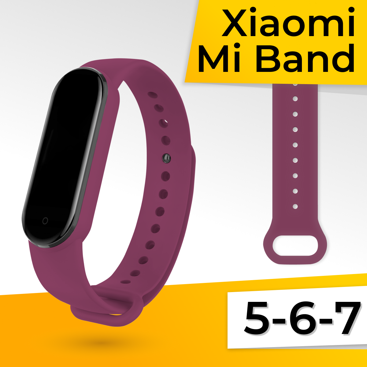 Силиконовый ремешок для умных часов Xiaomi Mi Band 5, 6, 7 / Сменный спортивный браслет для фитнес трекера Сяоми Ми Бэнд 5, 6, 7 / Фиолетовый