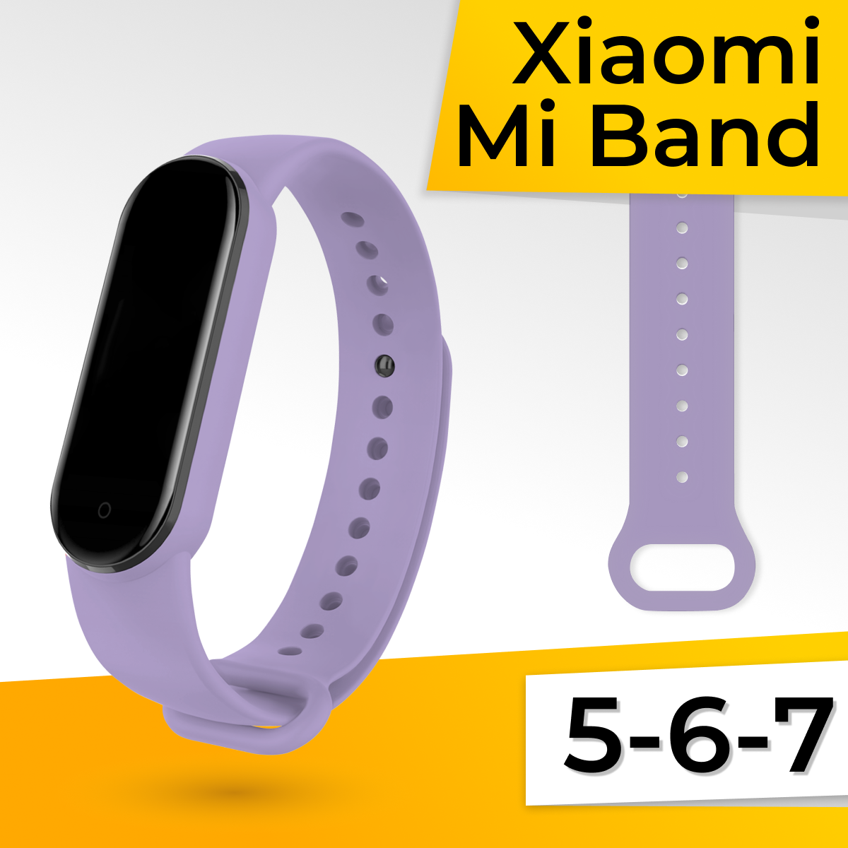 Силиконовый ремешок для умных часов Xiaomi Mi Band 5, 6, 7 / Сменный спортивный браслет для фитнес трекера Сяоми Ми Бэнд 5, 6, 7 / Сиреневый