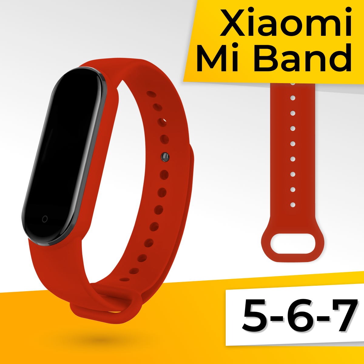 Силиконовый ремешок для умных часов Xiaomi Mi Band 5, 6, 7 / Сменный спортивный браслет для фитнес трекера Сяоми Ми Бэнд 5, 6, 7 / Красный