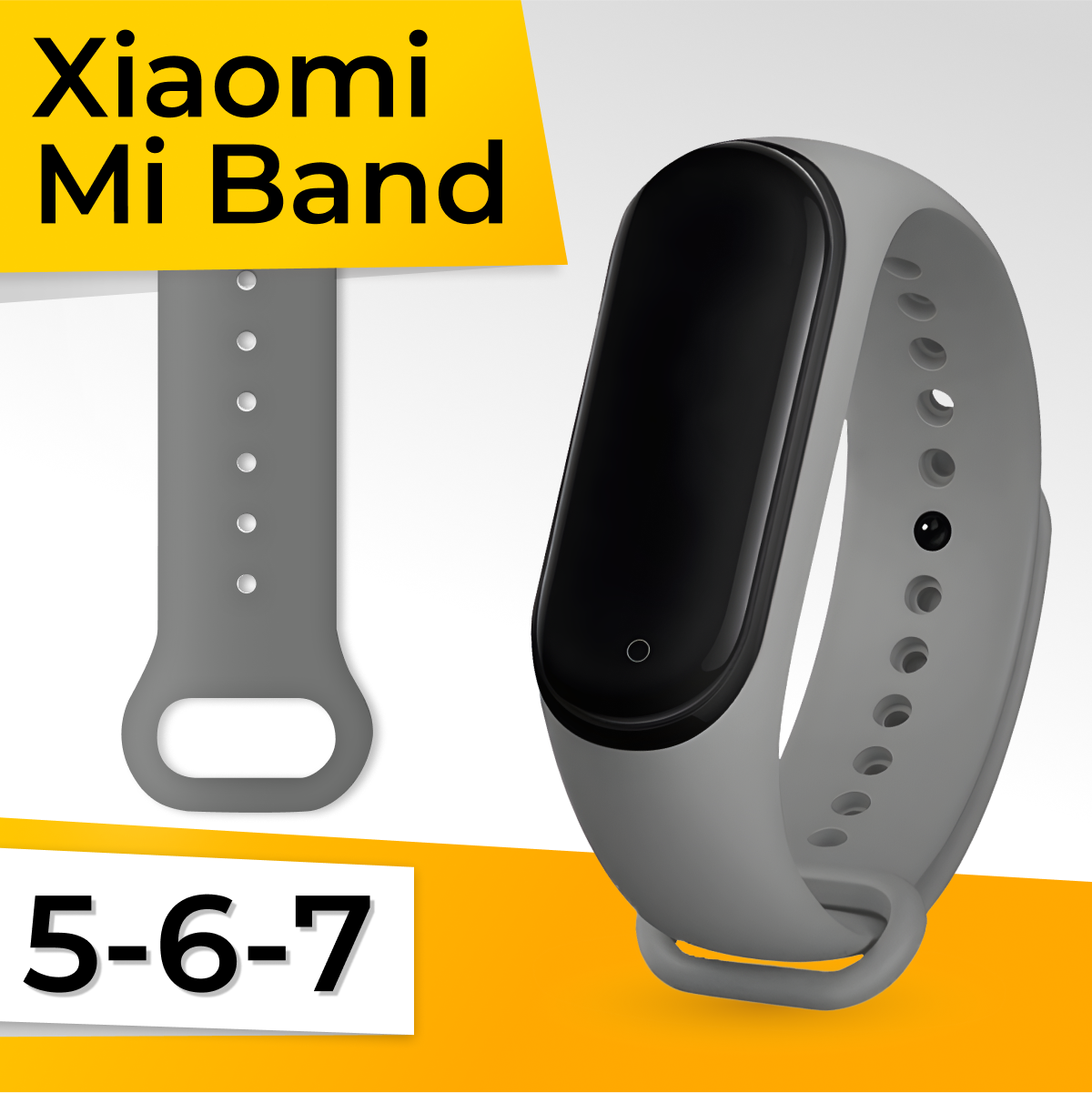 Силиконовый ремешок для умных часов Xiaomi Mi Band 5, 6, 7 / Сменный спортивный браслет для фитнес трекера Сяоми Ми Бэнд 5, 6, 7 / Серый