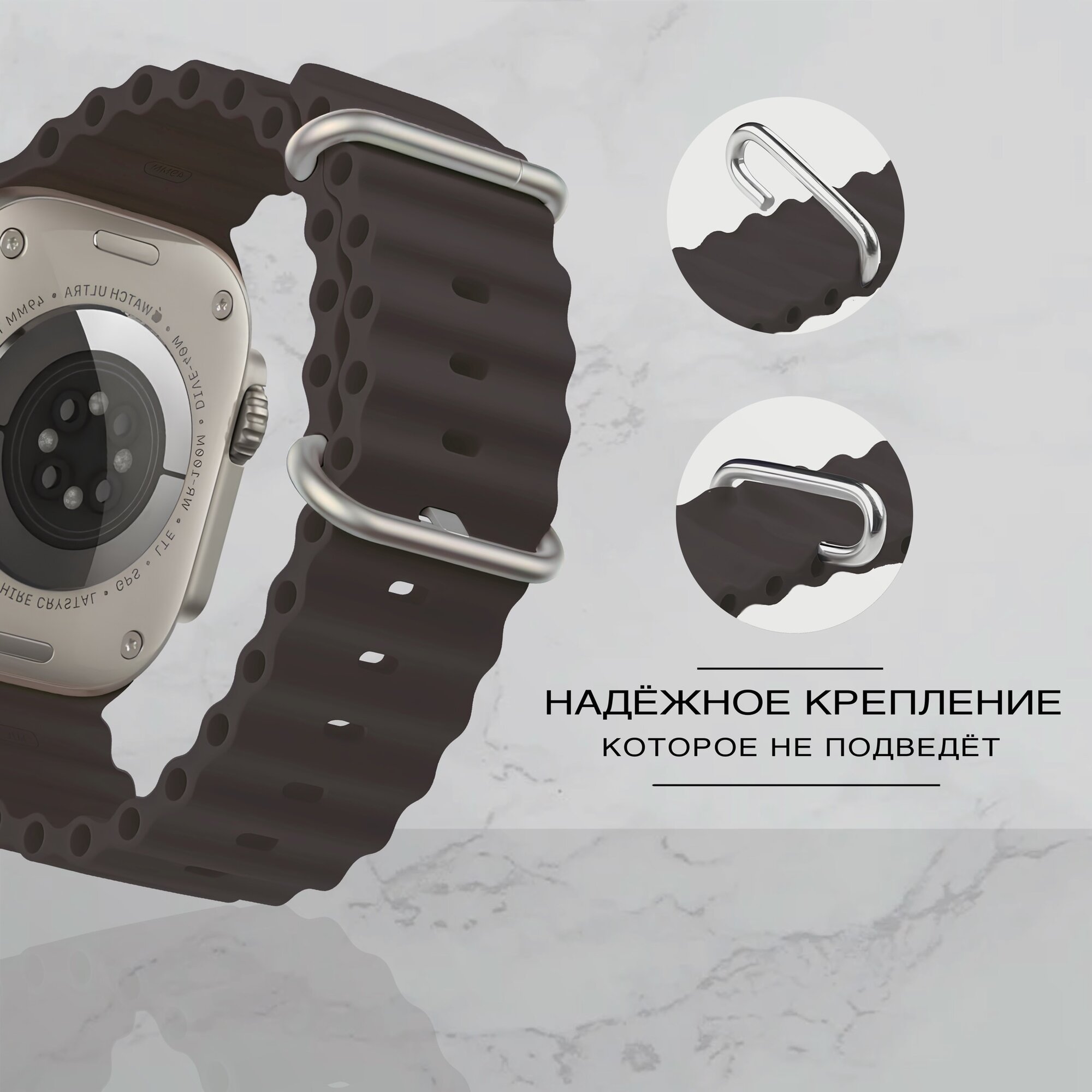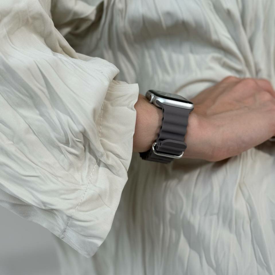СохранитьСиликоновый ремешок для Apple Watch 42-49mm Ocean Band, серо-коричневый интересное: