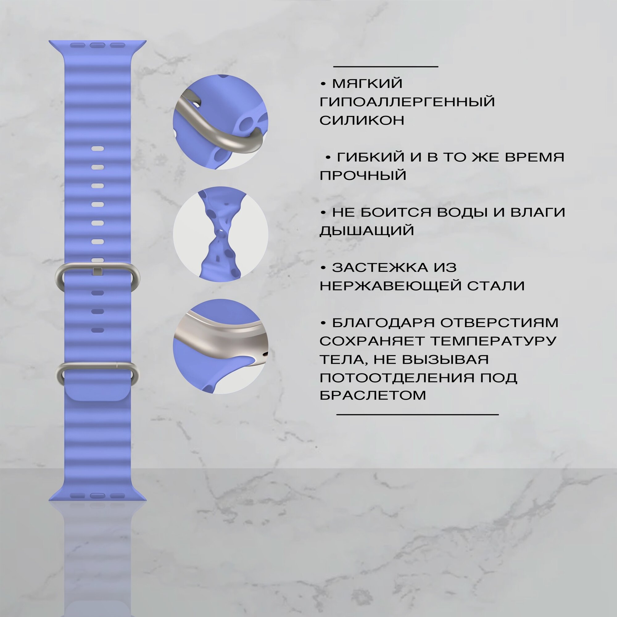 СохранитьСиликоновый ремешок для Apple Watch 42-49mm Ocean Band, лиловый интересное:
