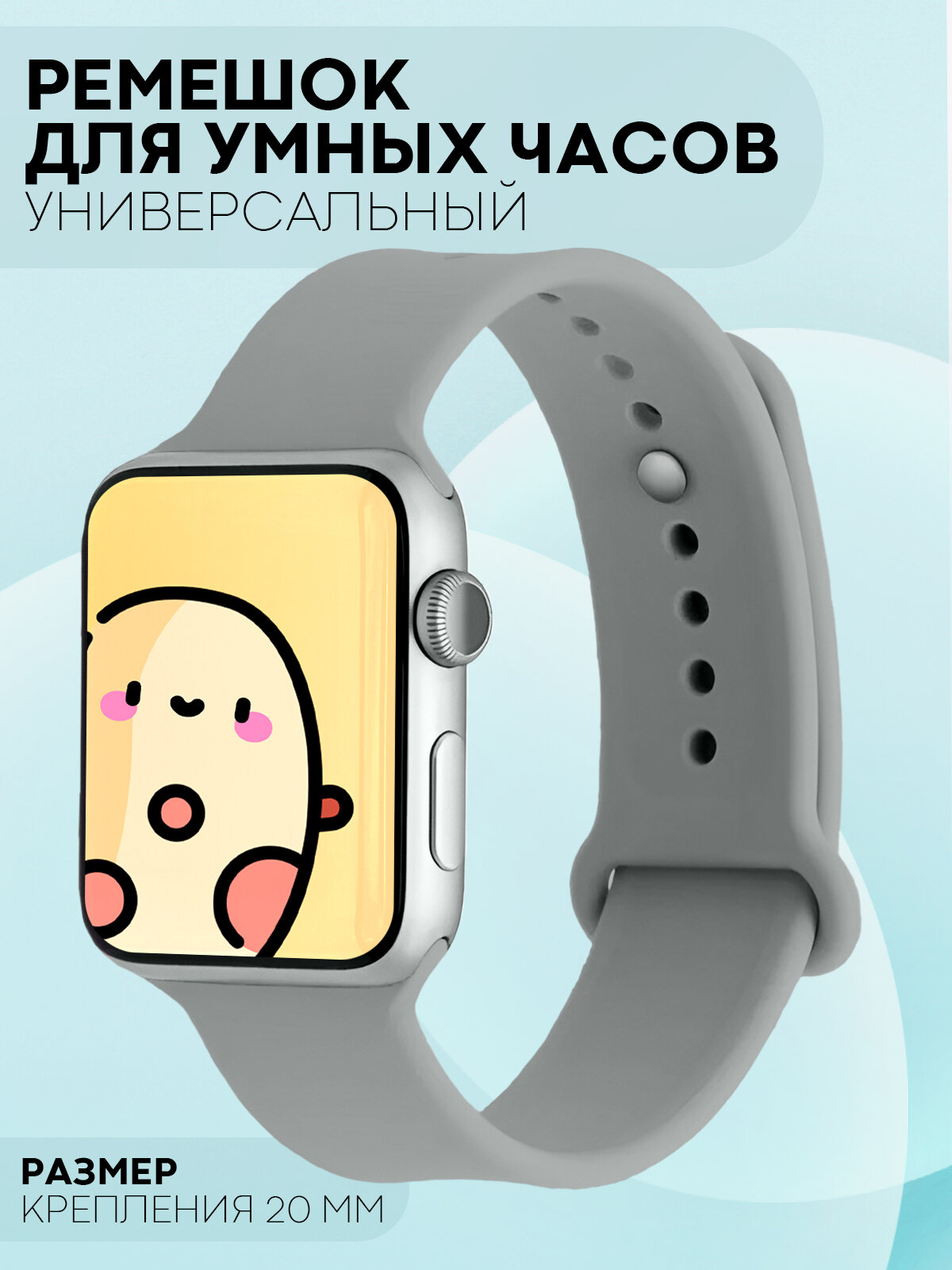 Универсальный ремешкок для умных часов, силиконовый, ширина 20 мм, бренд Картофан, серый интересное: