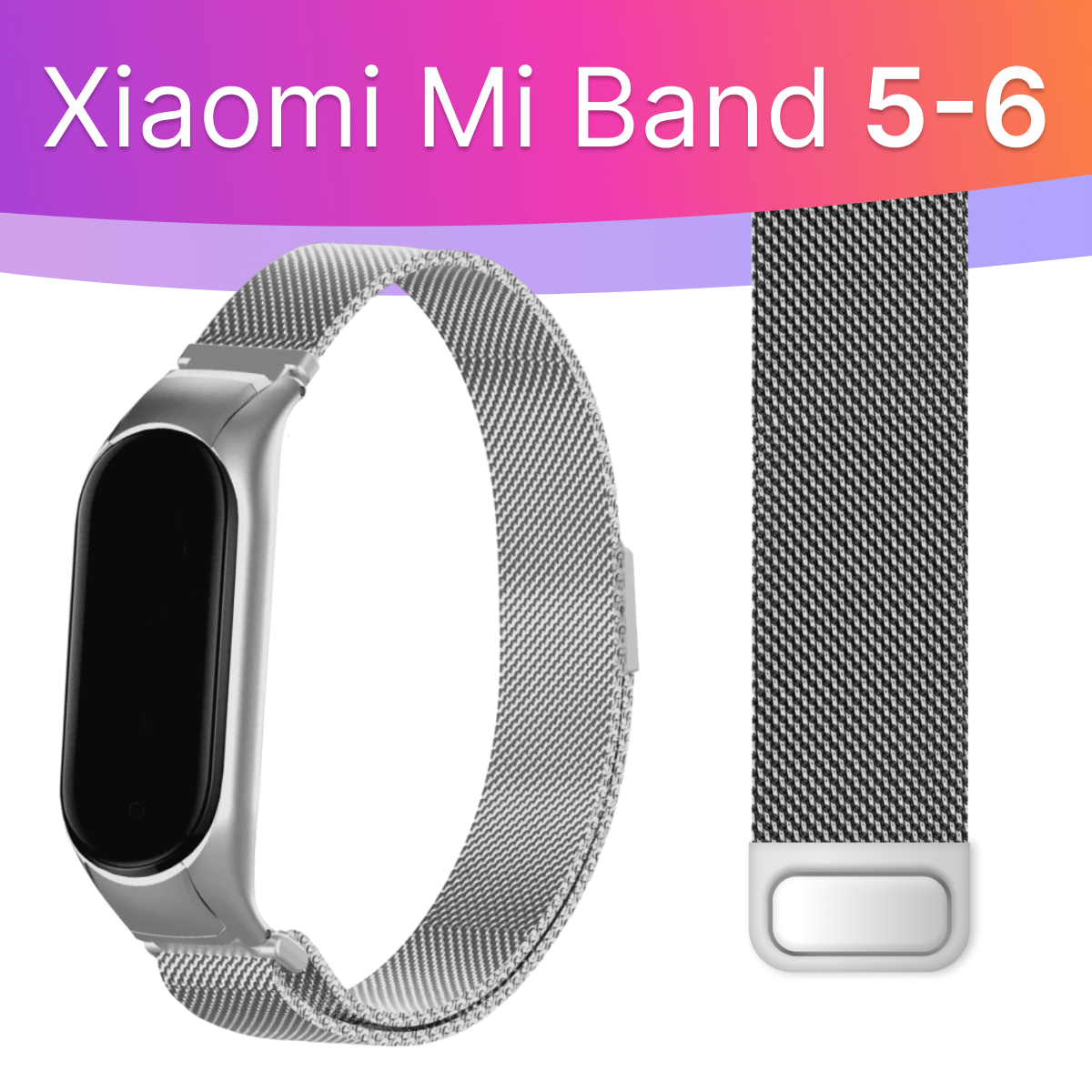 Ремешок миланская петля для смарт часов Xiaomi Mi Band 5, 6 / Металлический браслет (milanese loop) для фитнес трекера Сяоми Ми Бэнд 5, 6 / Фиолетовый
