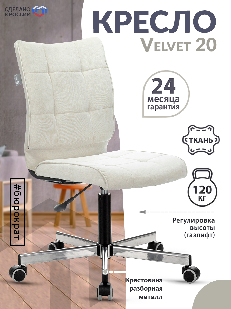 Кресло Бюрократ CH-330M/VELV20 без подлокотников молочный крестовина металл