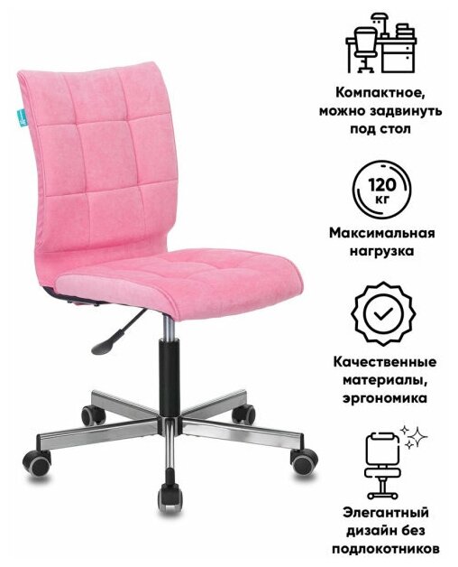 Кресло компьютерное Бюрократ CH-330M, стул на колесиках без подлокотников, низкой спинкой, экокожа, розовый