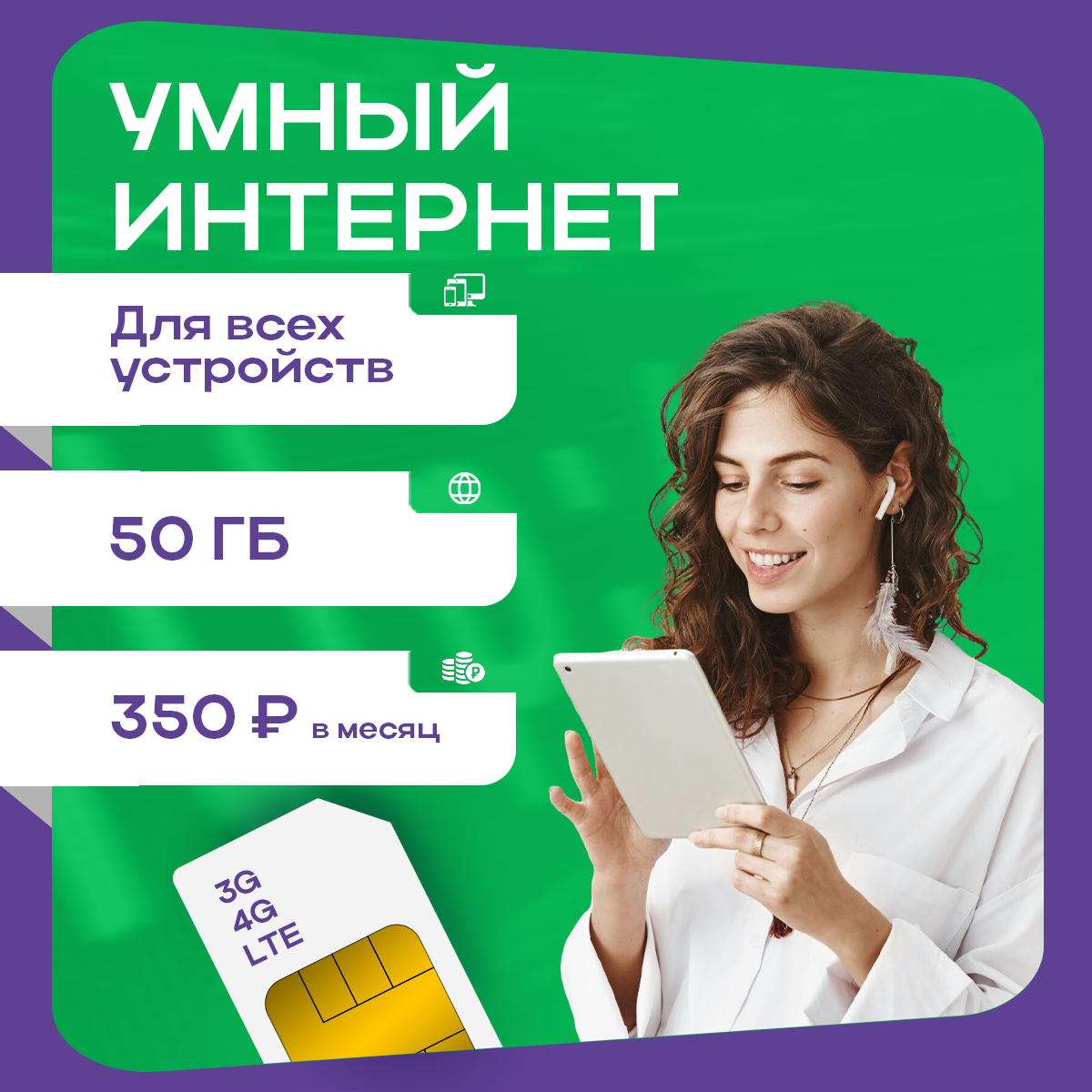 Купить Сим-карта для интернета 50Гб для модема/роутера/ноутбука