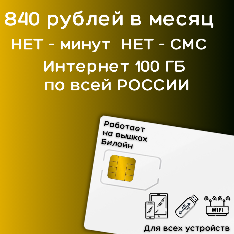 Сим карта интернет 840 рублей в месяц по РФ 100 ГБ 4G LTE YABEV1 интересное:
