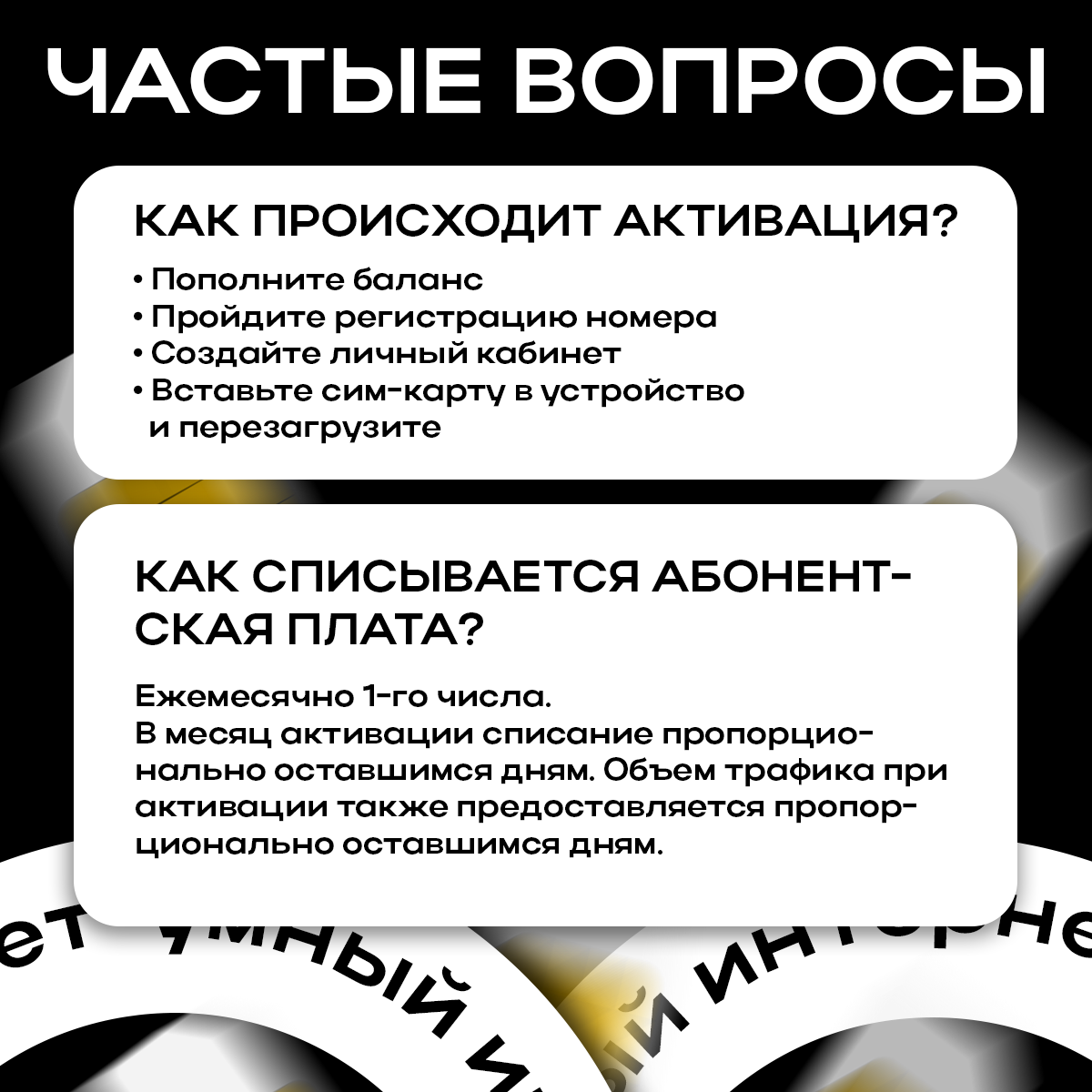 | Дополнительная информация | Инструкция по активации идет в комплекте. Для активации нужно предоставить персональные данные абонента. |