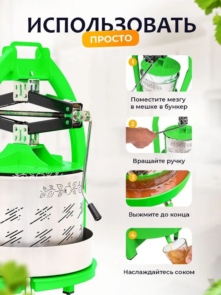 Пресс для отжима сока винограда, яблок, фруктов и овощей 15 л ручная соковыжималка пресс для дома, дачи и сада интересное: