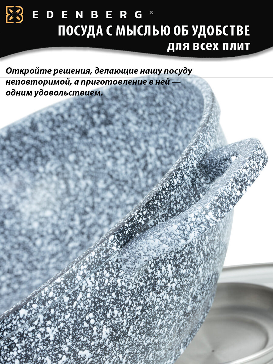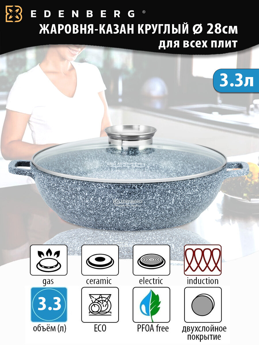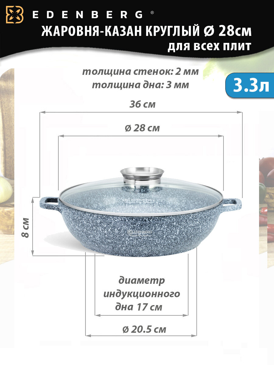 Казан из литого алюминия с мраморным покрытием с крышкой 28см 3.3л для всех видов плит / Сотейник / Жаровня интересное: