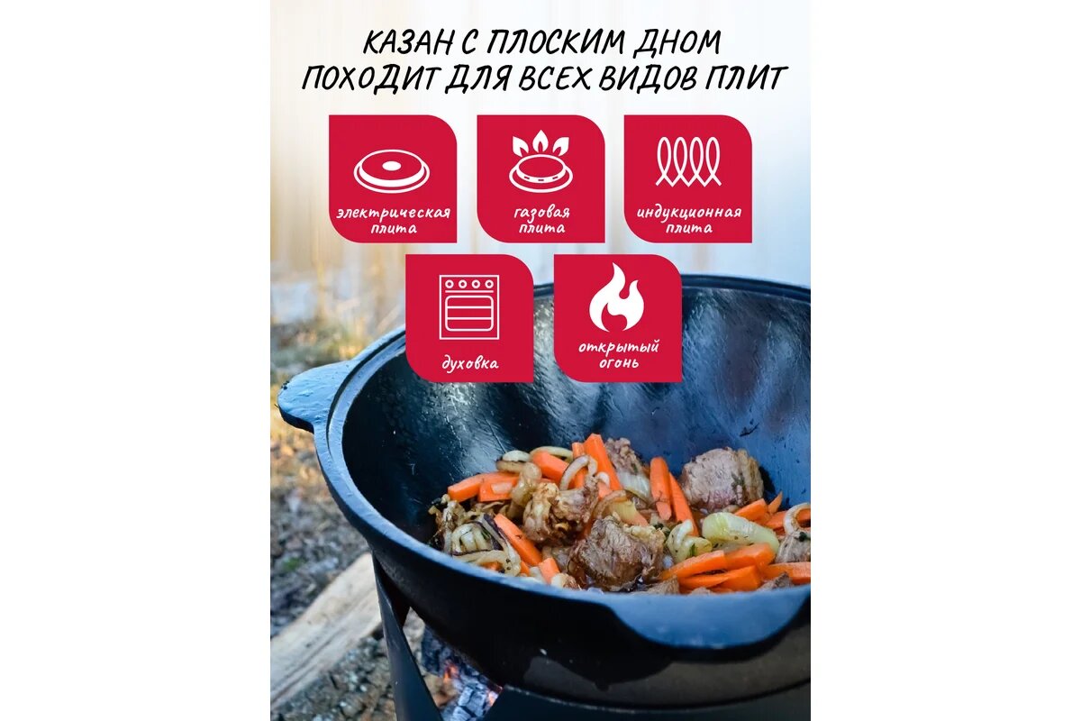| Дополнительная информация | Комплектация: Казан, Крышка с ручкой, Крышка-сковорода чугунная, Коробка, Инструкция |