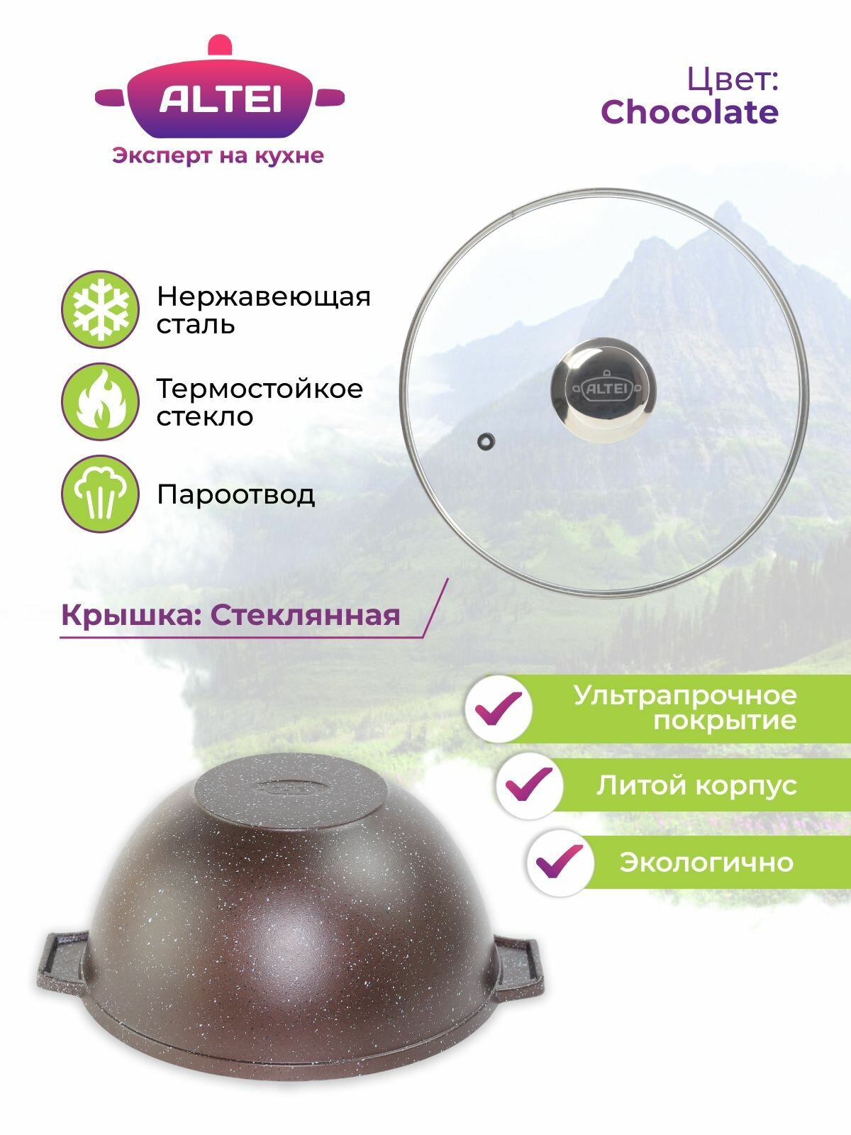 | Совместимые плиты | Для электрических плитДля стеклокерамических плитДля открытого огняДля духовкиДля газовых плитДля СВЧДля галогеновых конфорок |