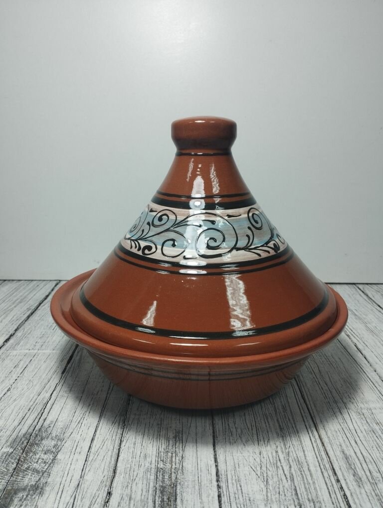Купить Тажин 1 литр, из красной глины с ручной росписью, для тушения мяса и овощей, духовке
