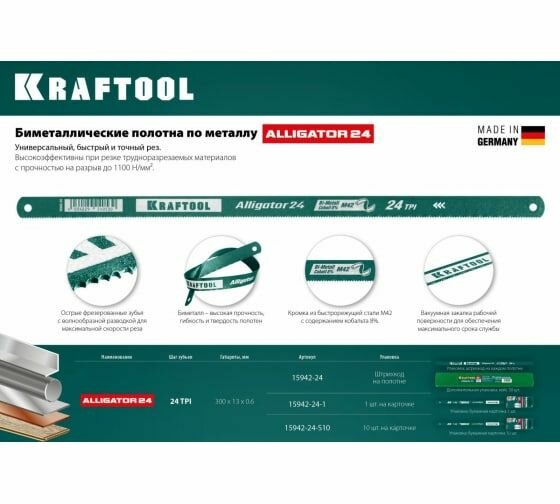 Полотно по металлу Alligator-24, биметаллическое, 300 мм, 24 TPI, 1 шт., арт. 15942-24 интересное: