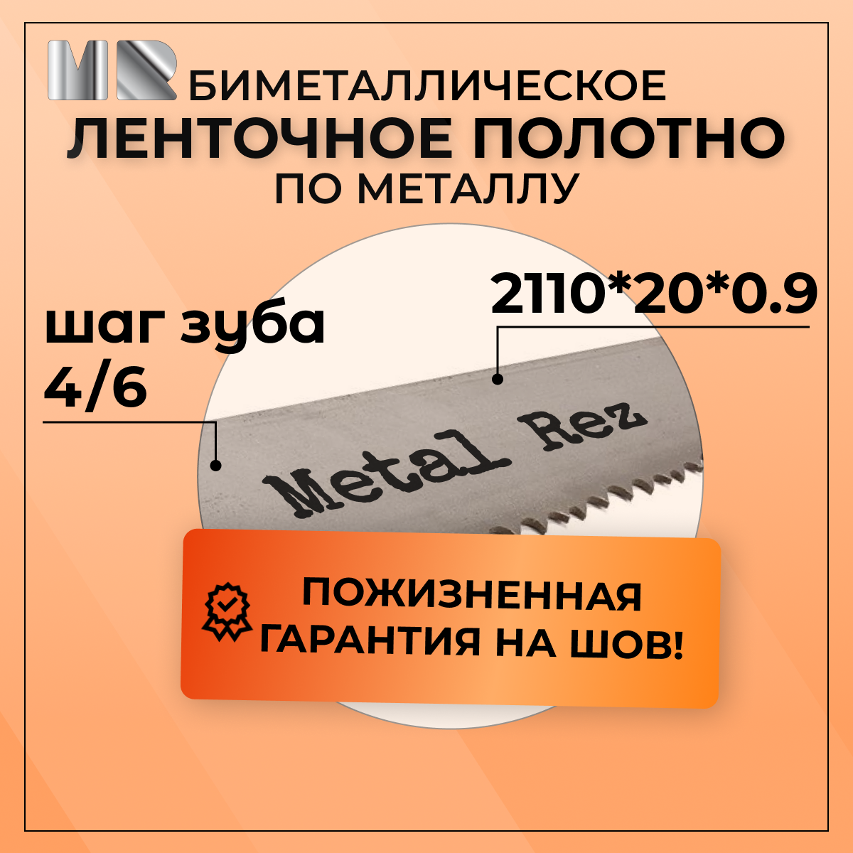 Купить Полотно для ленточной пилы по металлу MetalRez M42 2110 x 20 х 0,9 с шагом зуба 4/6 от 1 шт биметаллическое